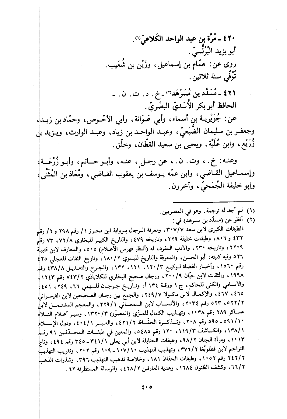 421- مُسدَّد بن مسرهد [2]- خ. د. ت. ن. - الحافظ أبو بكر الأسديّ البصريّ.