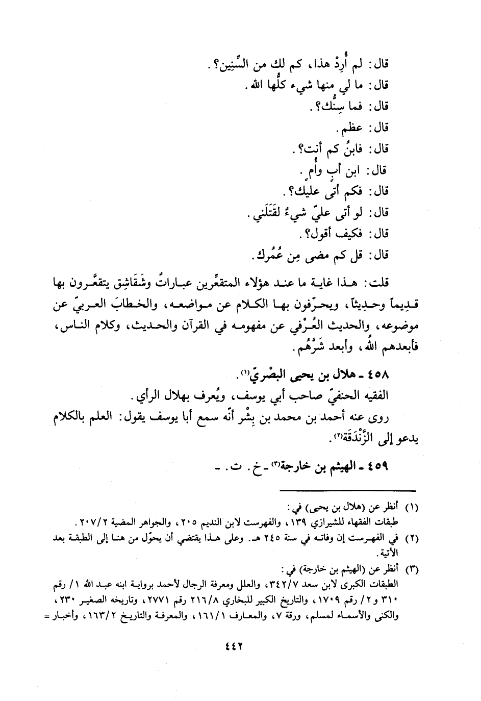[2] في الفهرست إن وفاته في سنة 245 هـ. وعلى هذا يقتضي أن يحوّل من هنا إلى الطبقة بعد الآتية.