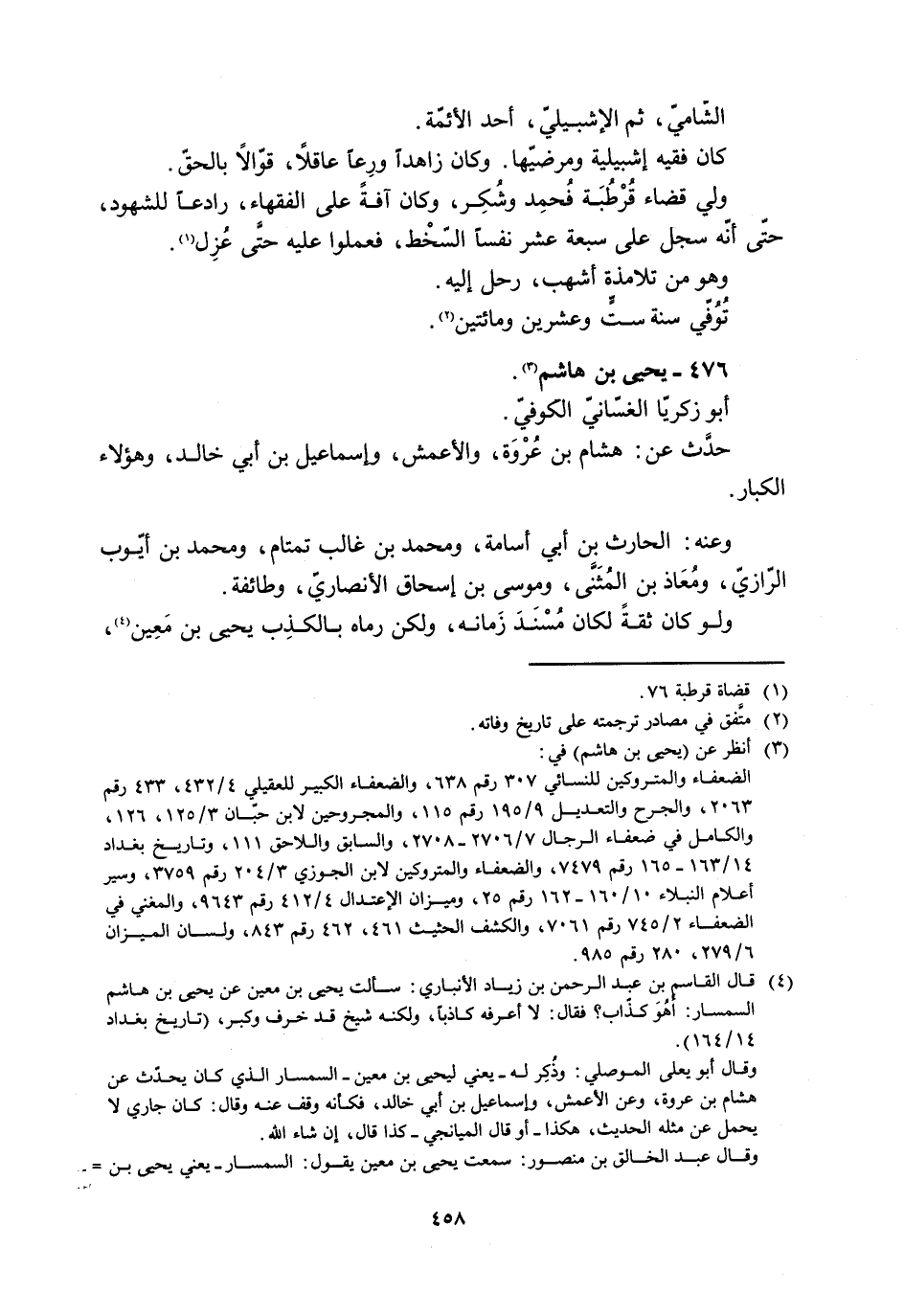 [4] قال القاسم بن عبد الرحمن بن زياد الأنباري: سألت يحيى بن معين عن يحيى بن هاشم السمسار: أهو كذّاب؟ فقال: لا أعرفه كاذبا، ولكنه شيخ قد خرف وكبر، (تاريخ بغداد 14/ 164) .
