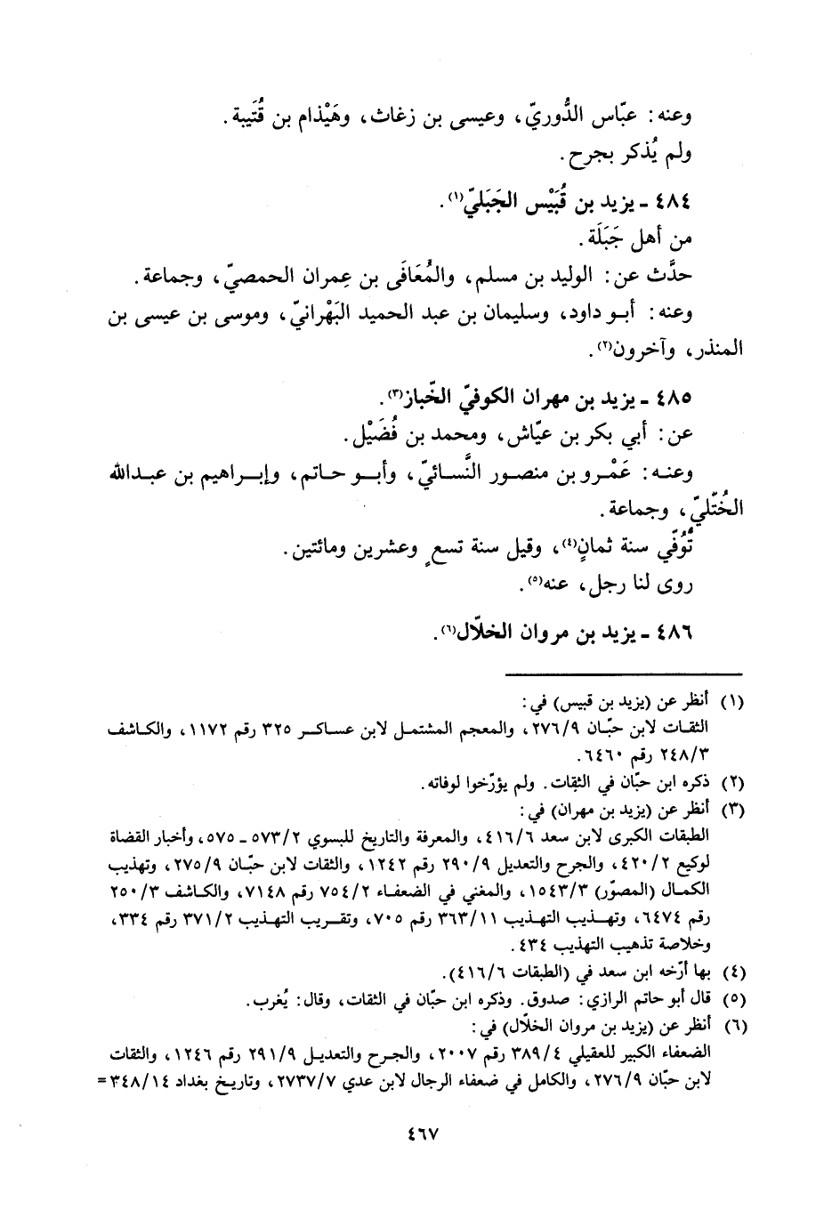[6] انظر عن (يزيد بن مروان الخلّال) في: