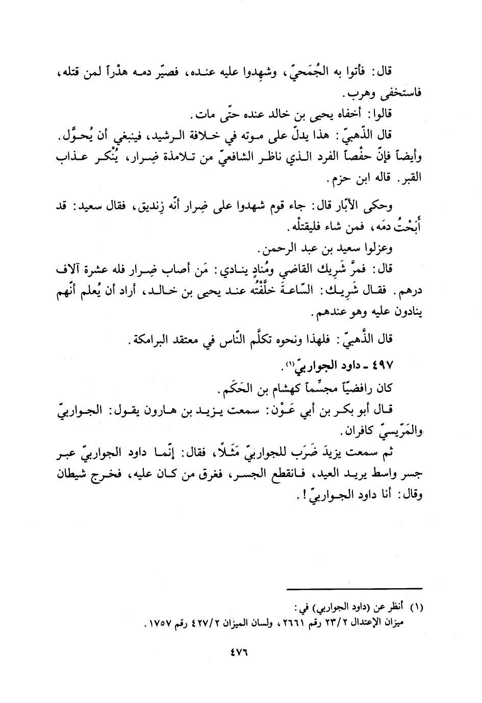 وأيضًا فإنّ حَفْصًا الفرد الذي ناظر الشّافعيّ من تلامذة ضِرار، يُنْكر عذاب القبر. قاله ابن حزم.