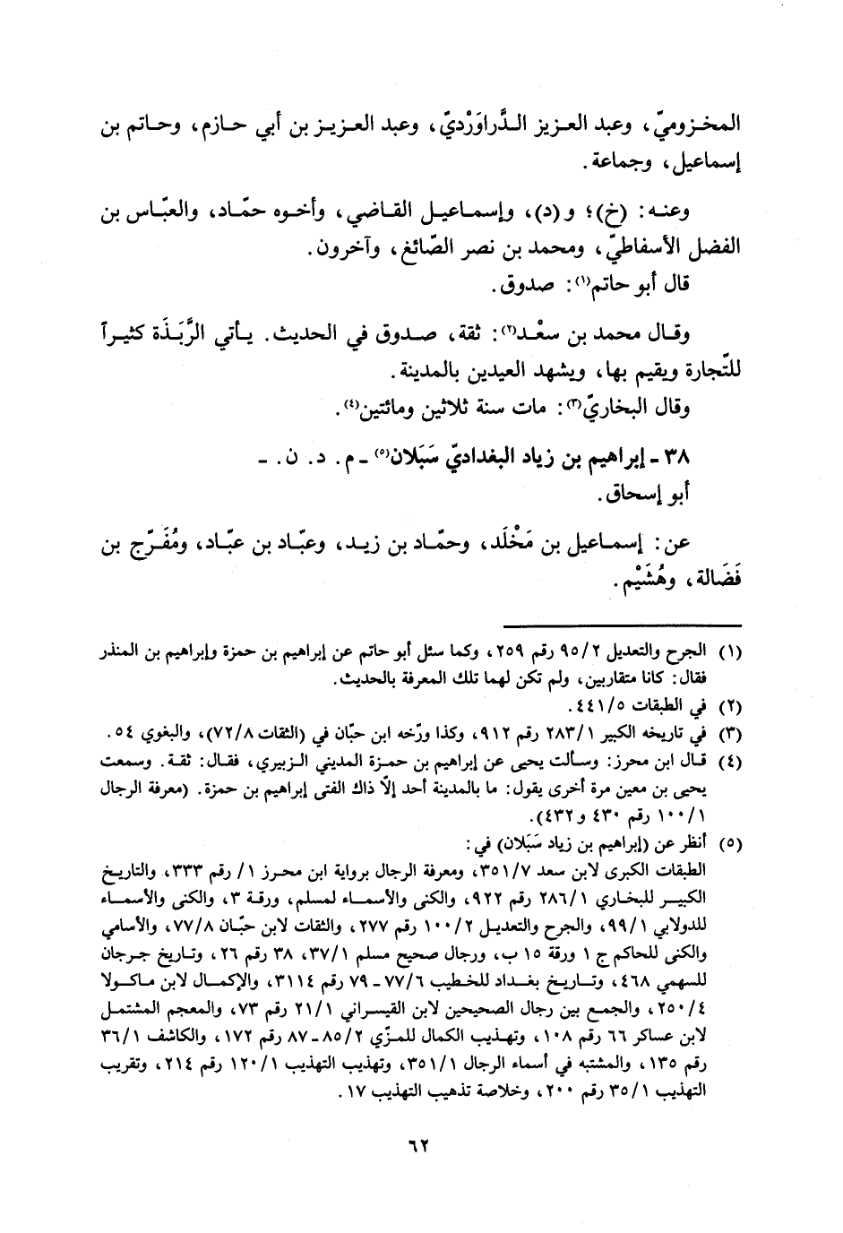 [1] الجرح والتعديل 2/ 95 رقم 259، وكما سئل أبو حاتم عن إبراهيم بن حمزة وإبراهيم بن المنذر فقال: كانا متقاربين، ولم تكن لهما تلك المعرفة بالحديث.