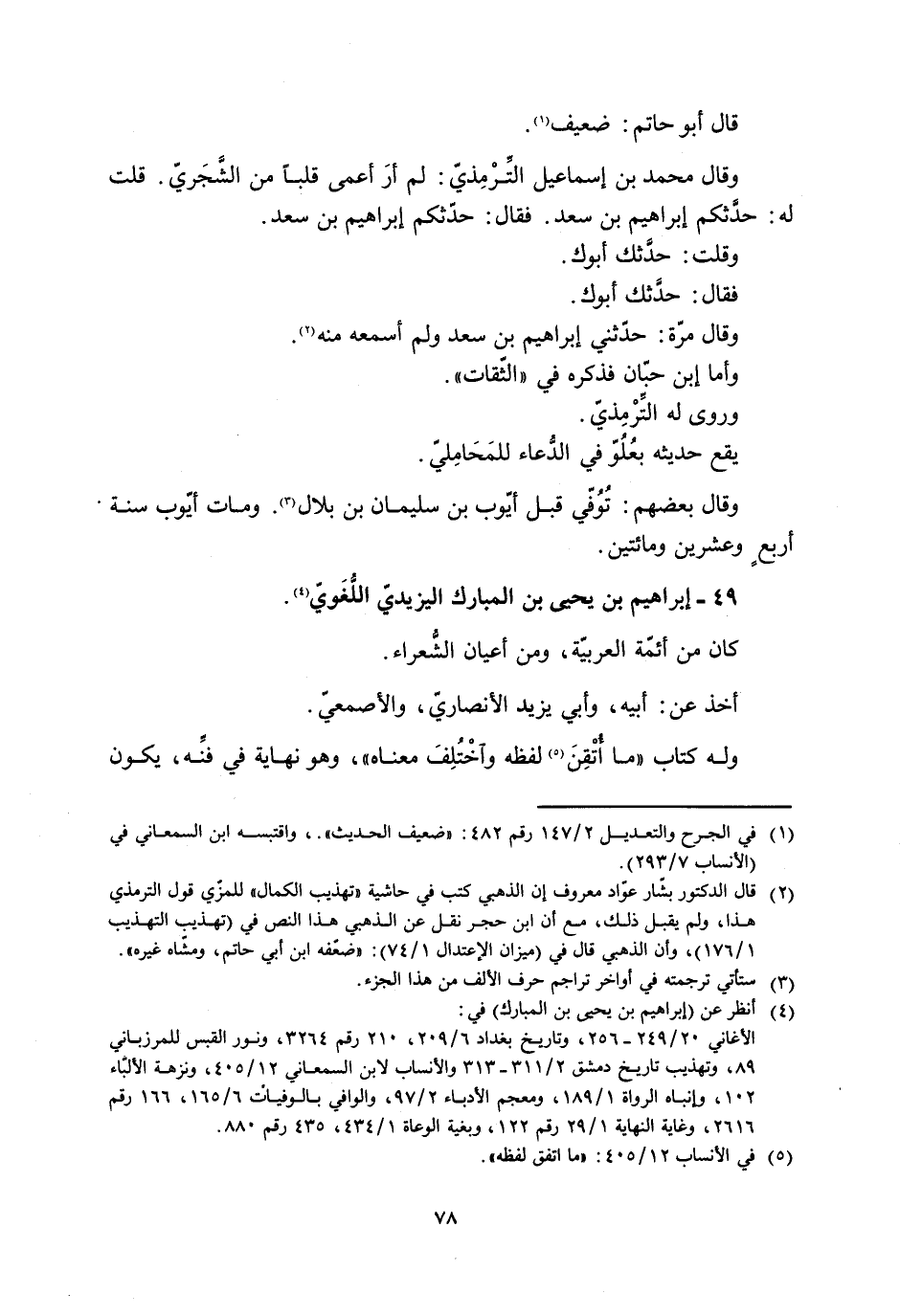 [1] في الجرح والتعديل 2/ 147 رقم 482: «ضعيف الحديث» .، واقتبسه ابن السمعاني في (الأنساب 7/ 293) .