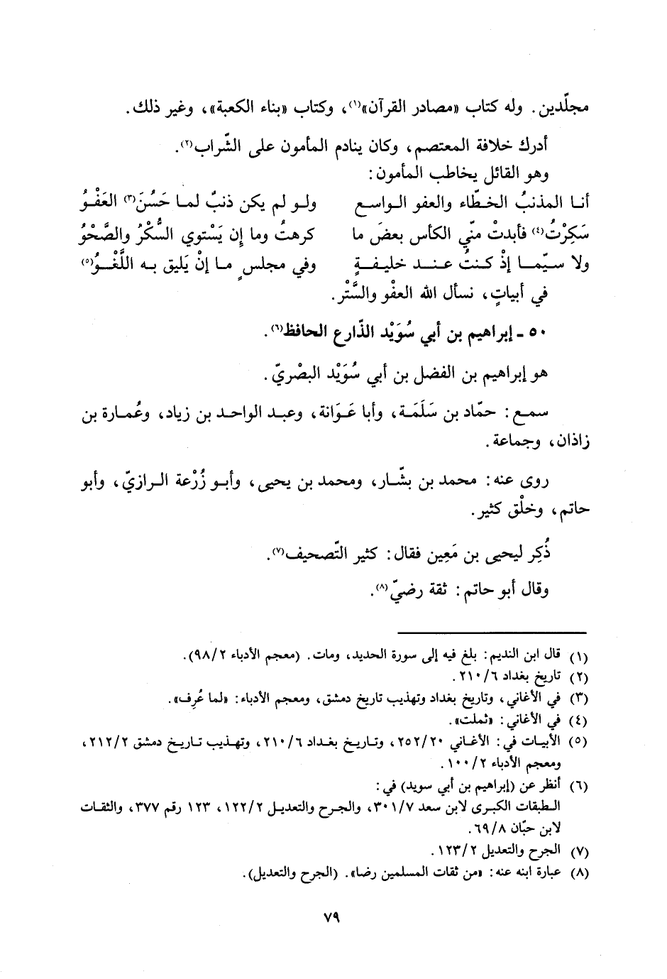 [5] الأبيات في: الأغاني 20/ 252، وتاريخ بغداد 6/ 210، وتهذيب تاريخ دمشق 2/ 212، ومعجم الأدباء 2/ 100.