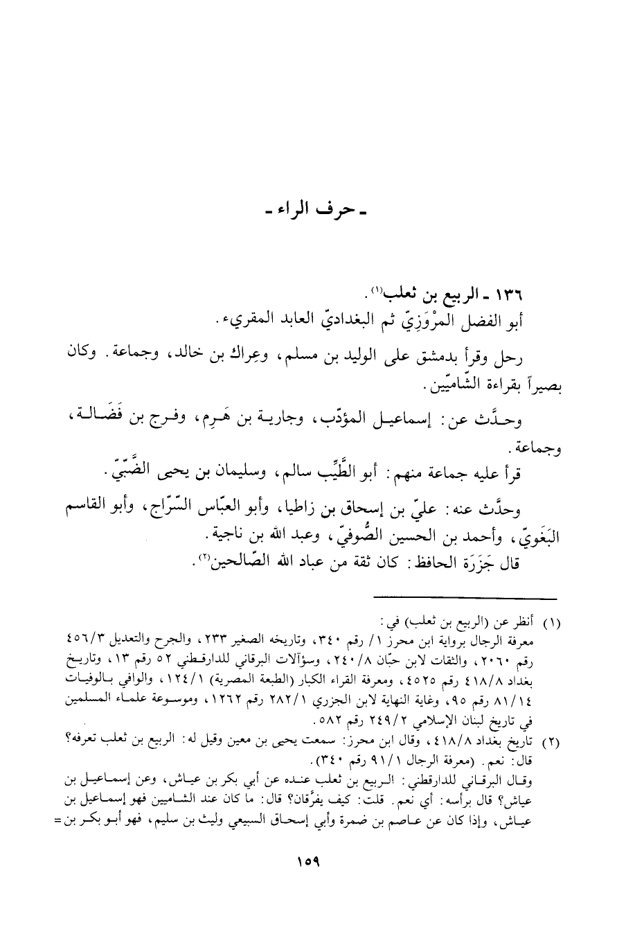 [2] تاريخ بغداد 8/ 418، وقال ابن محرز: سمعت يحيى بن معين وقيل له: الربيع بن ثعلب تعرفه؟