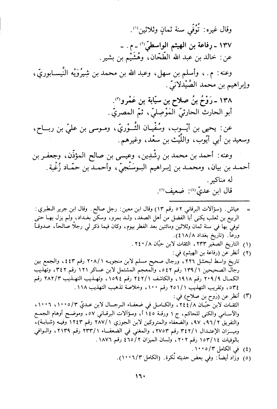 137- رِفاعة بْن الهيثم الواسطيّ [2]- م. - عن: خالد بْن عبد اللَّه الطحان، وهُشَيْم بْن بشير.