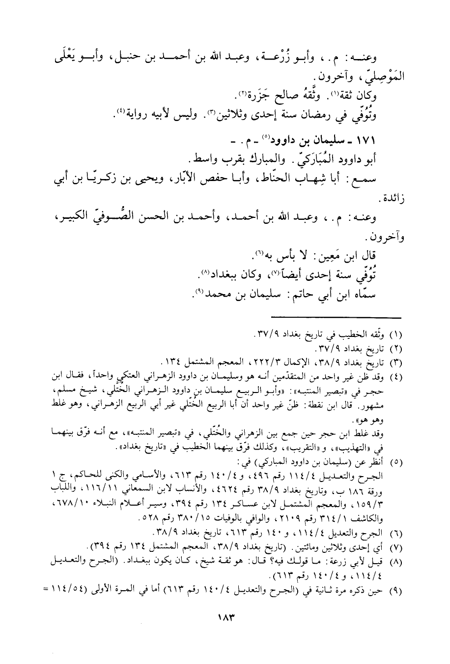 [6] الجرح والتعديل 4/ 114، و 140 رقم 613، تاريخ بغداد 9/ 38.