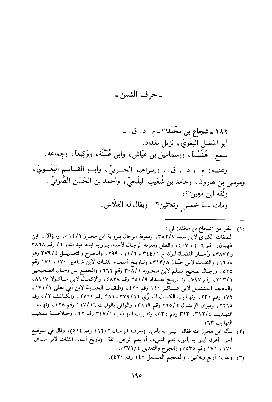 182- شجاع بن مخلد [1]- م. د. ق. - 182- شجاع بن مخلد [1]- م. د. ق. - أبو الفضل البغويّ، نزيل بغداد.