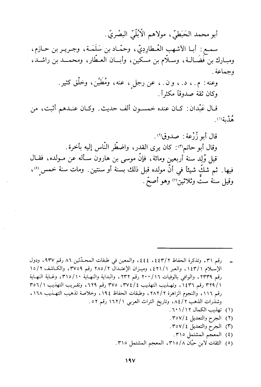 [ () ] رقم 31، وتذكرة الحفاظ 2/ 443، 444، والمعين في طبقات المحدّثين 86 رقم 937، ودول الإسلام 1/ 143، والعبر 1/ 421، وميزان الاعتدال 2/ 285 رقم 3759، والكاشف 2/ 15 رقم 2339، والوافي بالوفيات 16/ 200 رقم 232، والبداية والنهاية 10/ 315، وغاية النهاية 1/ 329 رقم 1436، وتهذيب التهذيب 4/ 374، 375 رقم 629، وتقريب التهذيب 1/ 356 رقم 116، والنجوم الزاهرة 2/ 282، وطبقات الحفاظ 194، وخلاصة تذهيب التهذيب 168، وشذرات الذهب 2/ 84، وتاريخ التراث العربيّ 1/ 162 رقم 52.