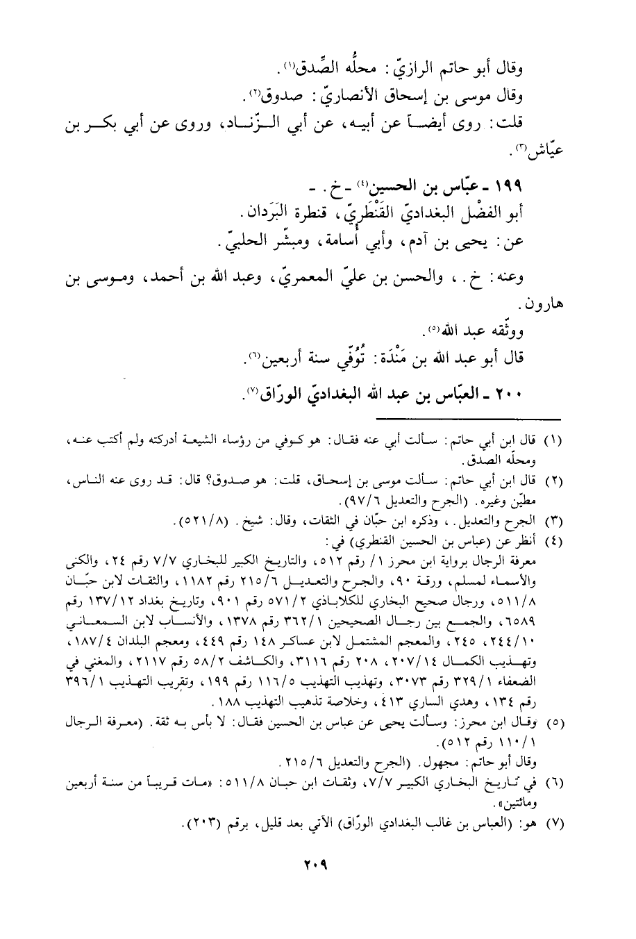 200- العبّاس بن عبد الله البغداديّ الورّاق [7] .