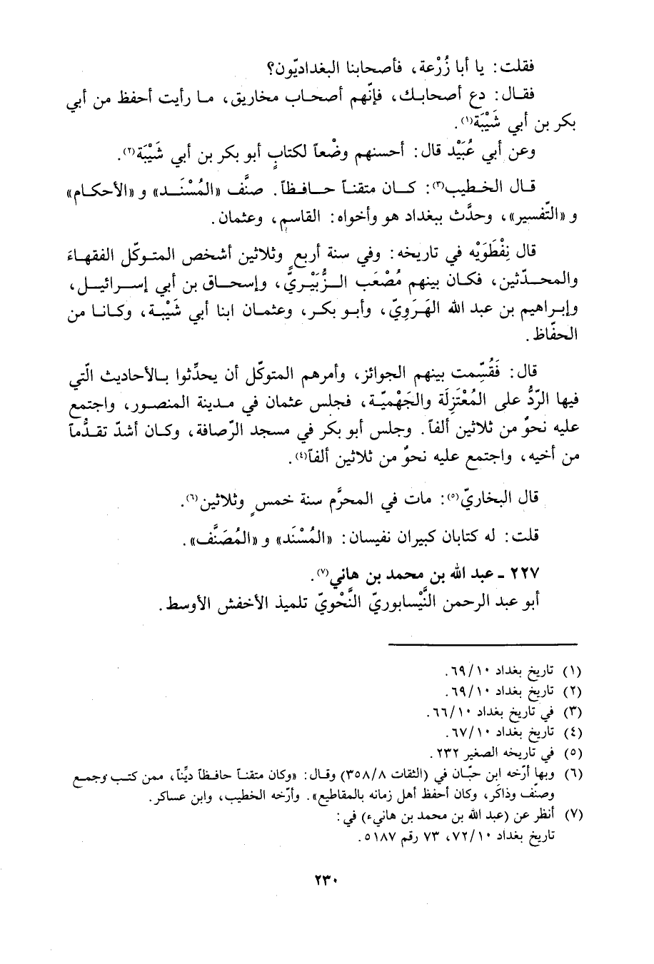 تاريخ بغداد 10/ 72، 73 رقم 5187.