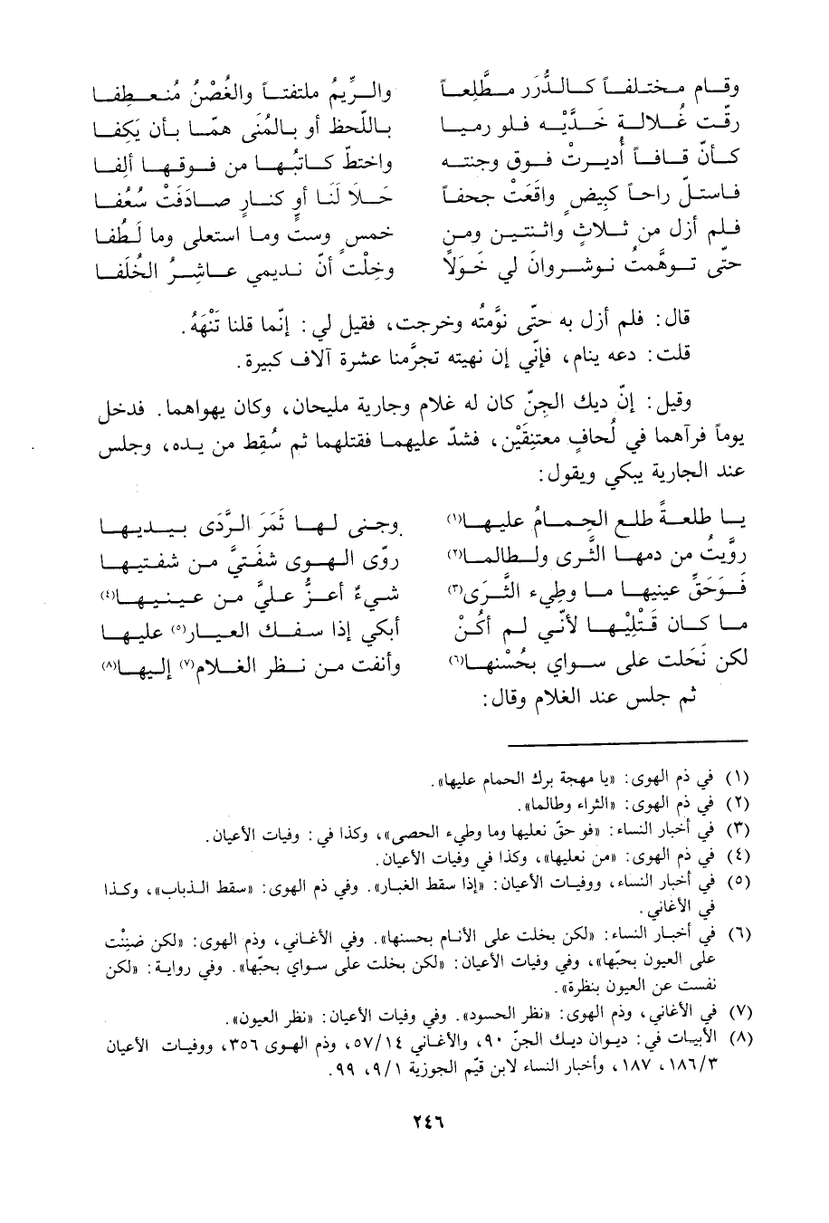 [8] الأبيات في: ديوان ديك الجنّ 90، والأغاني 14/ 57، وذم الهوى 356، ووفيات الأعيان 3/ 186، 187، وأخبار النساء لابن قيّم الجوزية 1/ 9، 99.