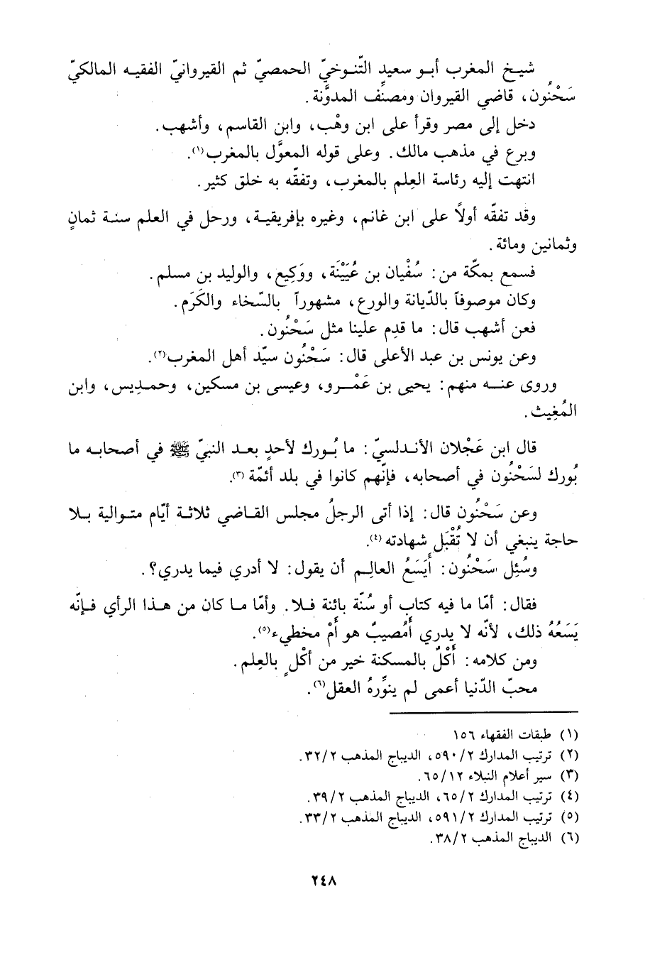 شيخ المغرب أَبُو سَعِيد التّنوخيّ الحمصيّ ثُمَّ القيروانيّ الفقيه المالكيّ سَحْنُون، قاضي القيروان ومصنف المدوَّنة.