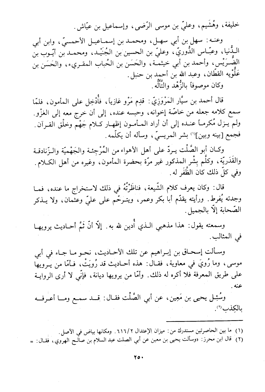 [2] قال ابن محرز: «وسألت يحيى بن معين عن أبي الصلت عبد السلام بن صالح الهروي، فقال: