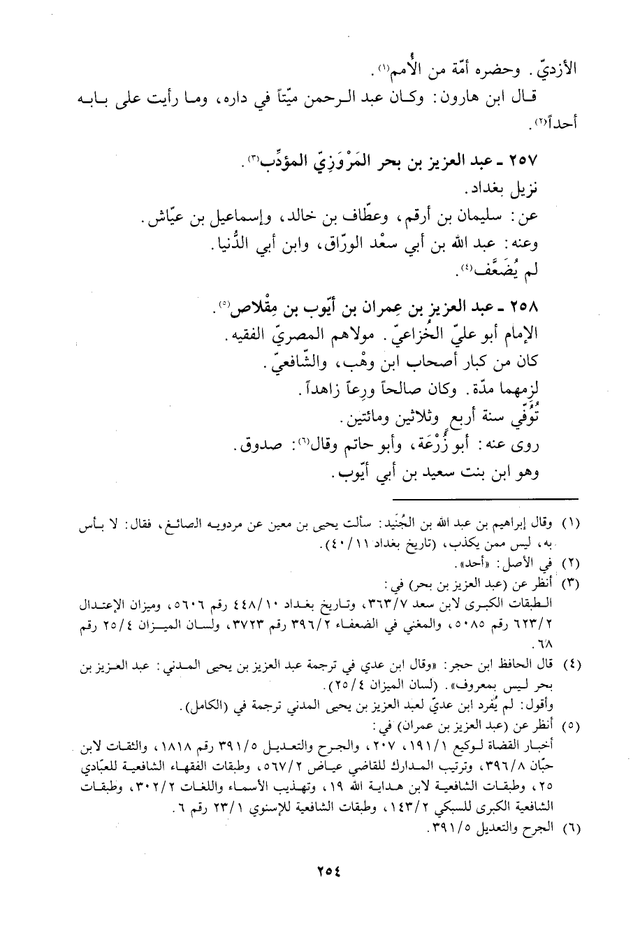 [4] قال الحافظ ابن حجر: «وقال ابن عدي في ترجمة عبد العزيز بن يحيى المدني: عبد العزيز بن بحر ليس بمعروف» . (لسان الميزان 4/ 25) .