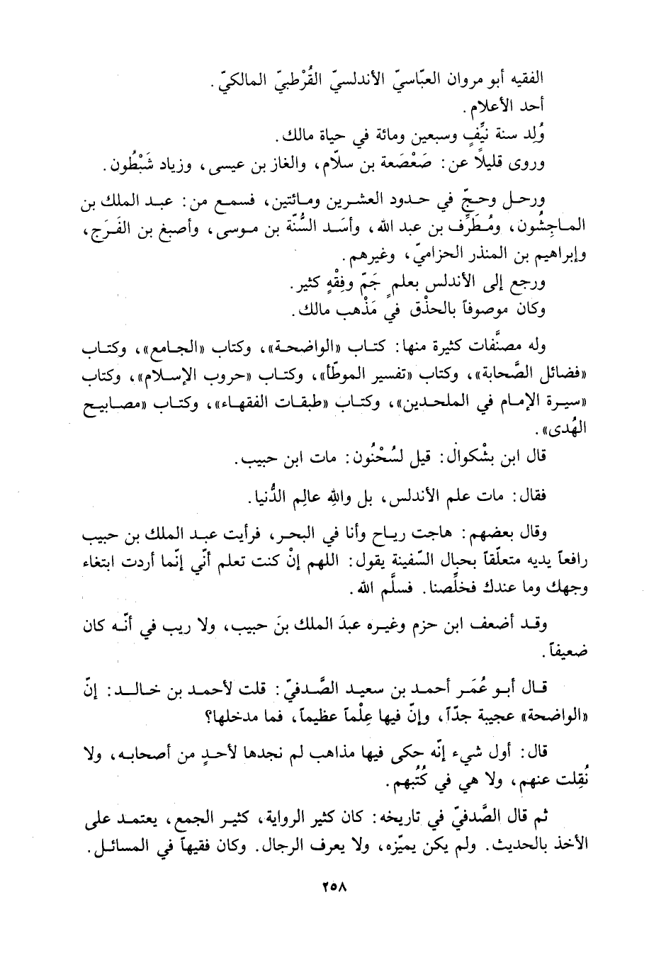 ثُمَّ قَالَ الصَّدفيّ فِي تاريخه: كَانَ كثير الرواية، كثير الجمع، يعتمدُ عَلَى الأخذ بالحديث. ولَم يكن يميّزه، ولا يعرف الرجال. وكان فقيهًا فِي المسائل.