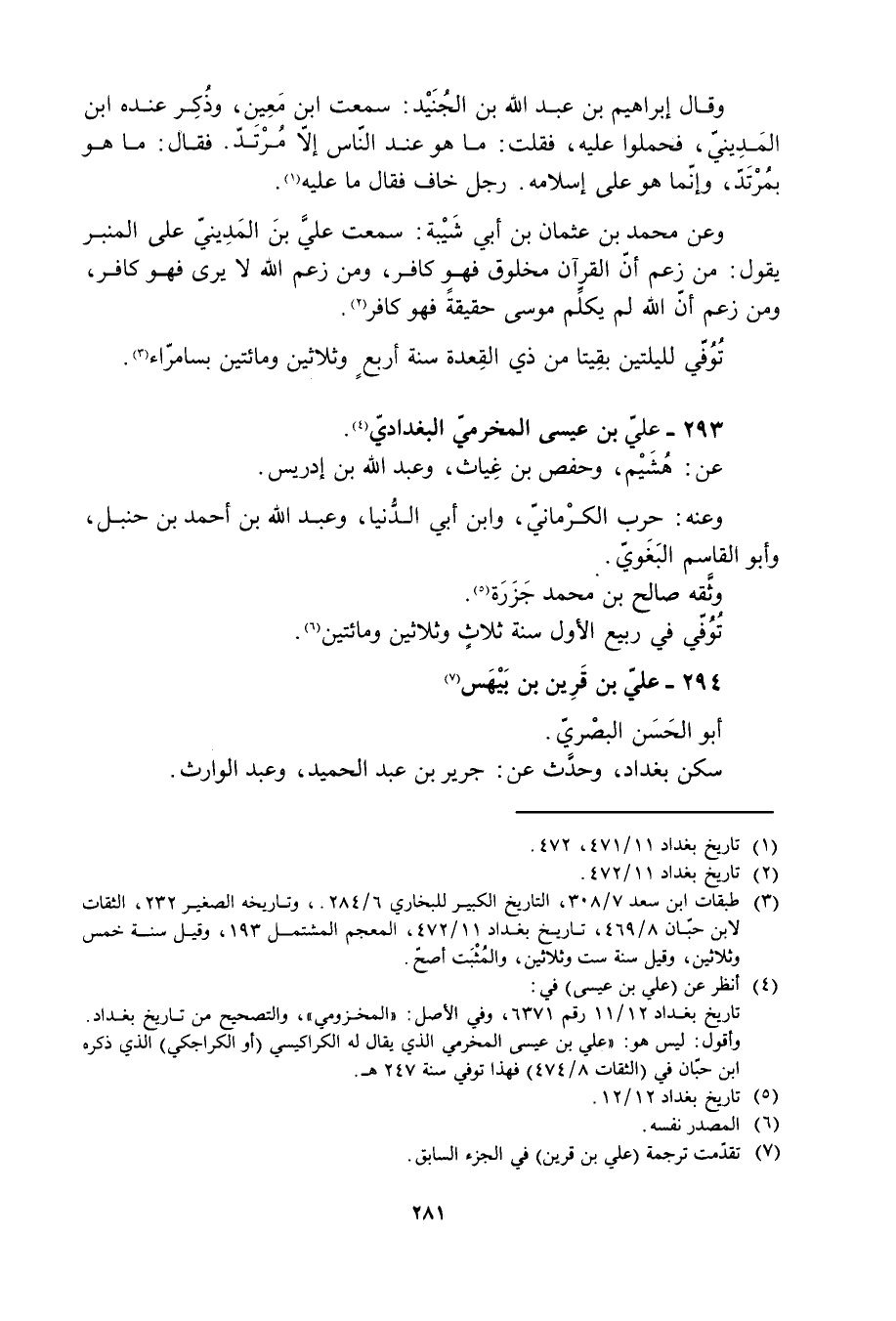 293- عليّ بْن عيسى المخرميّ البغداديّ [4] .