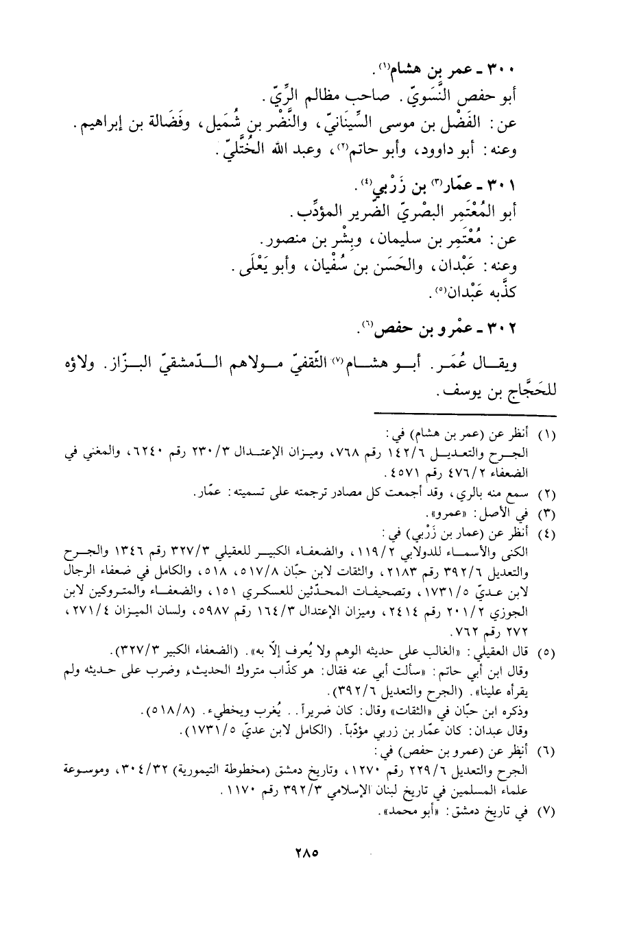 ويقال عمر. أبو هشام [7] الثقفي مولاهم الدمشقي البزاز. ولاؤه للحجّاج بن يوسف.