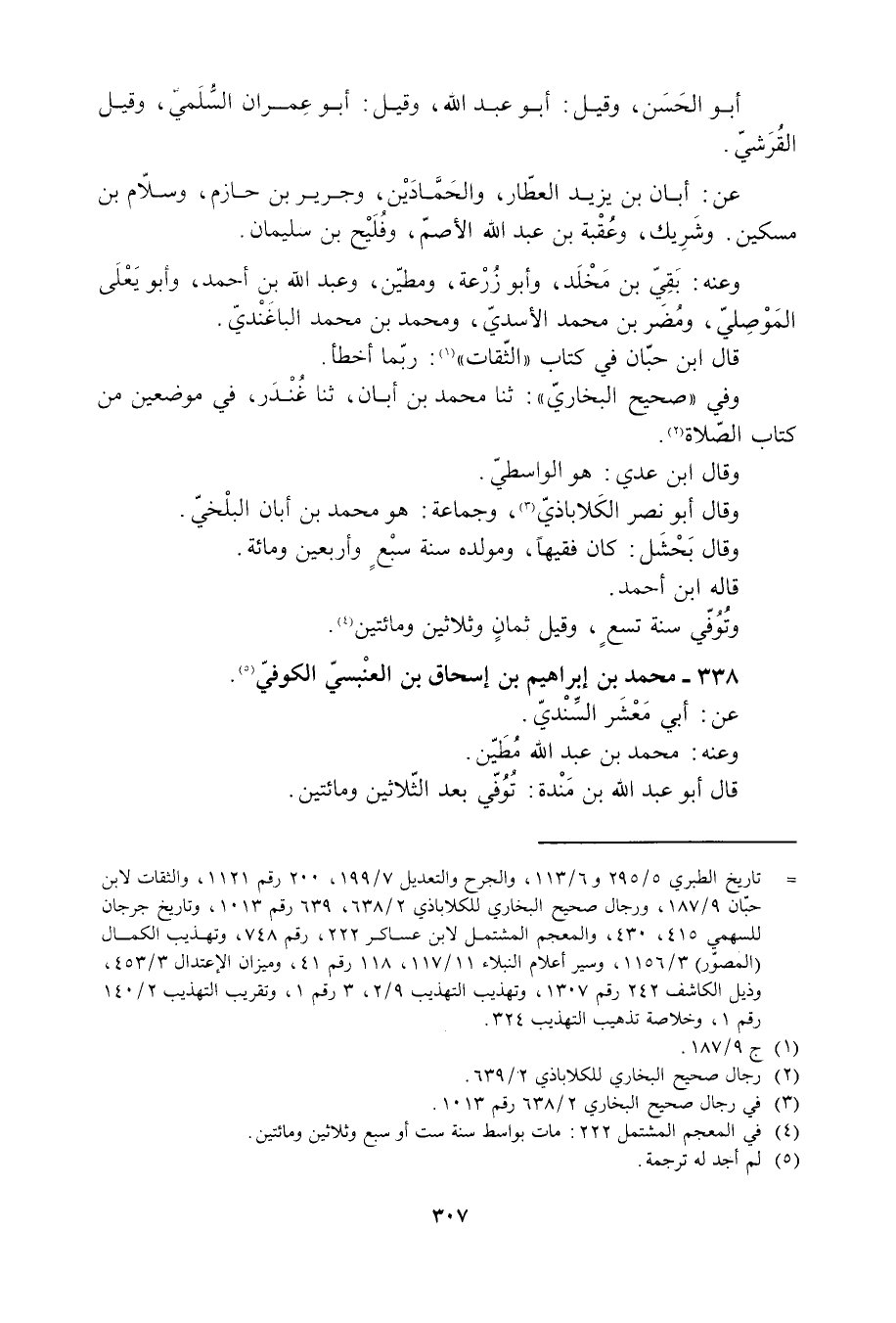 [4] في المعجم المشتمل 222: مات بواسط سنة ست أو سبع وثلاثين ومائتين.