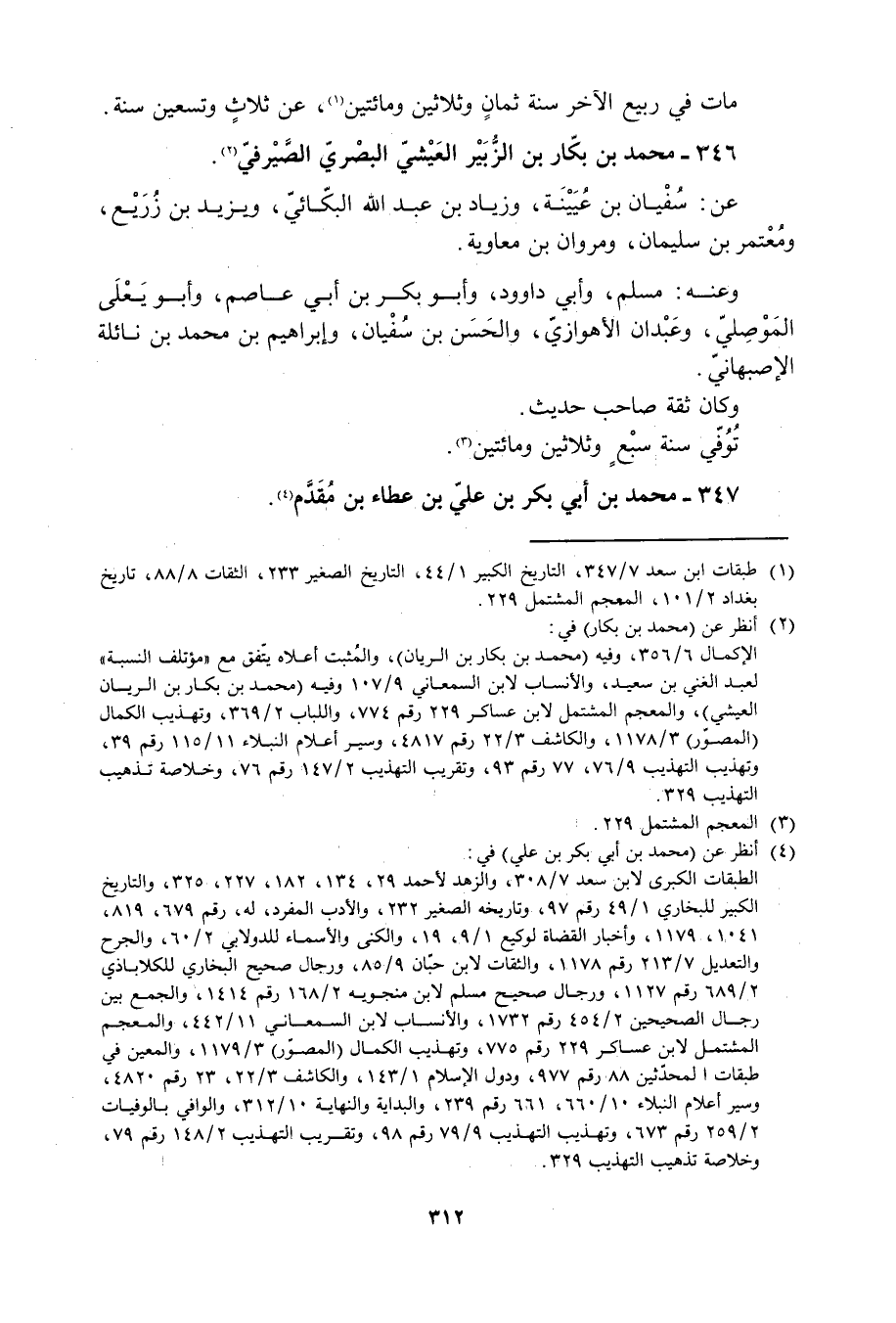 346- محمد بْن بكّار بْن الزُّبَيْر العَيْشيّ البصْرِيّ الصَّيْرَفيّ [2] .