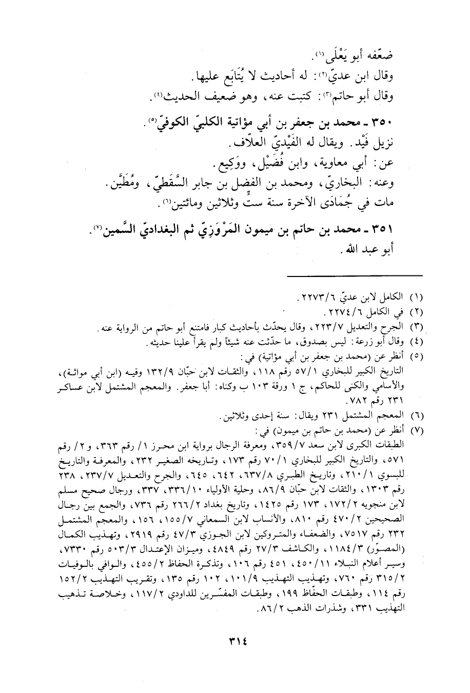 350- محمد بْن جَعْفَر بْن أَبِي مؤاتية الكلبيّ الكوفيّ [5] .