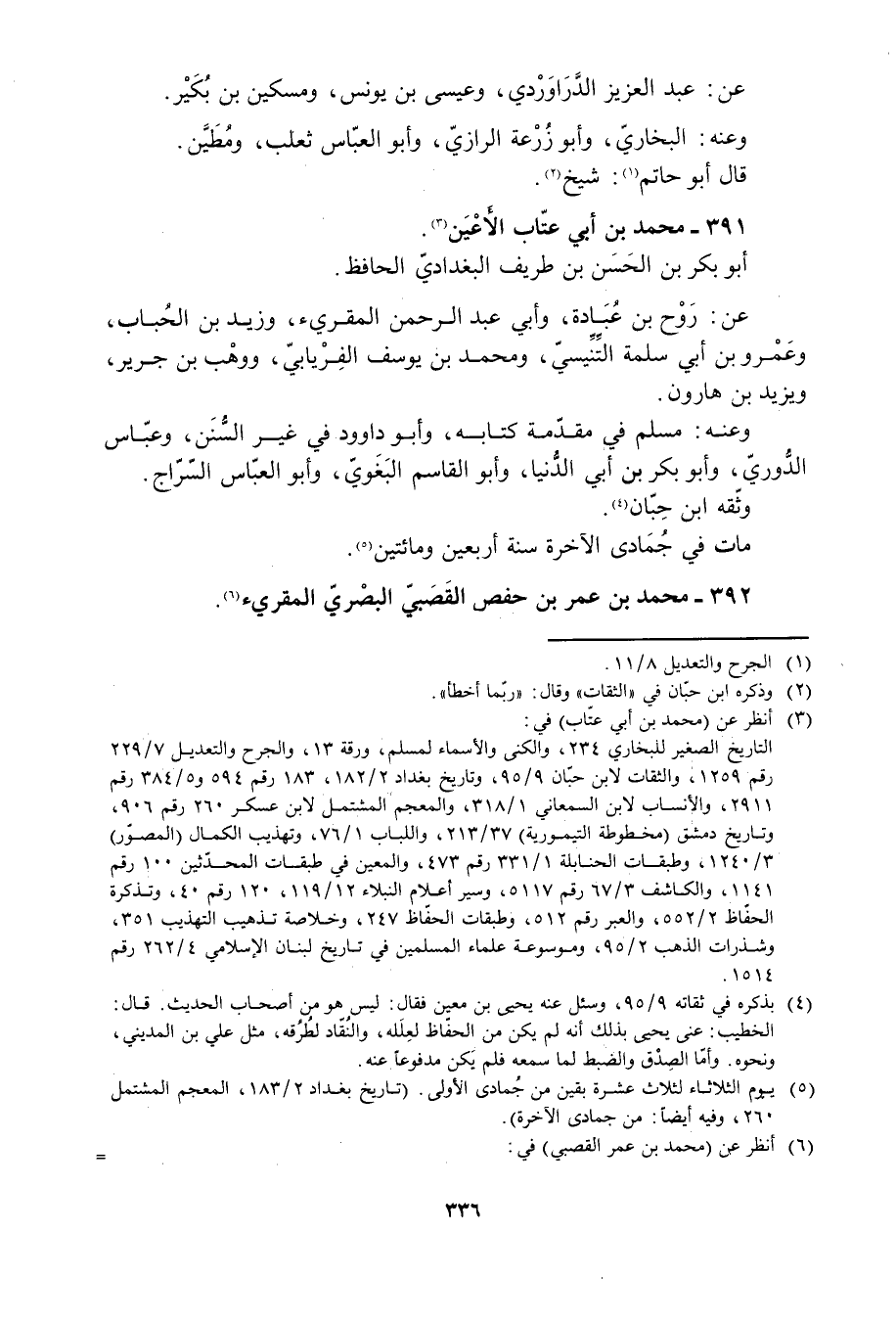 [4] بذكره في ثقاته 9/ 95، وسئل عنه يحيى بن معين فقال: ليس هو من أصحاب الحديث. قال: