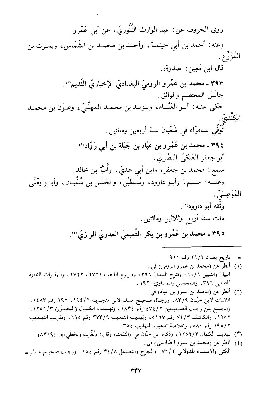 393- محمد بْن عَمْرو الروميّ البغدادي الإخباريّ النّديم [1] .