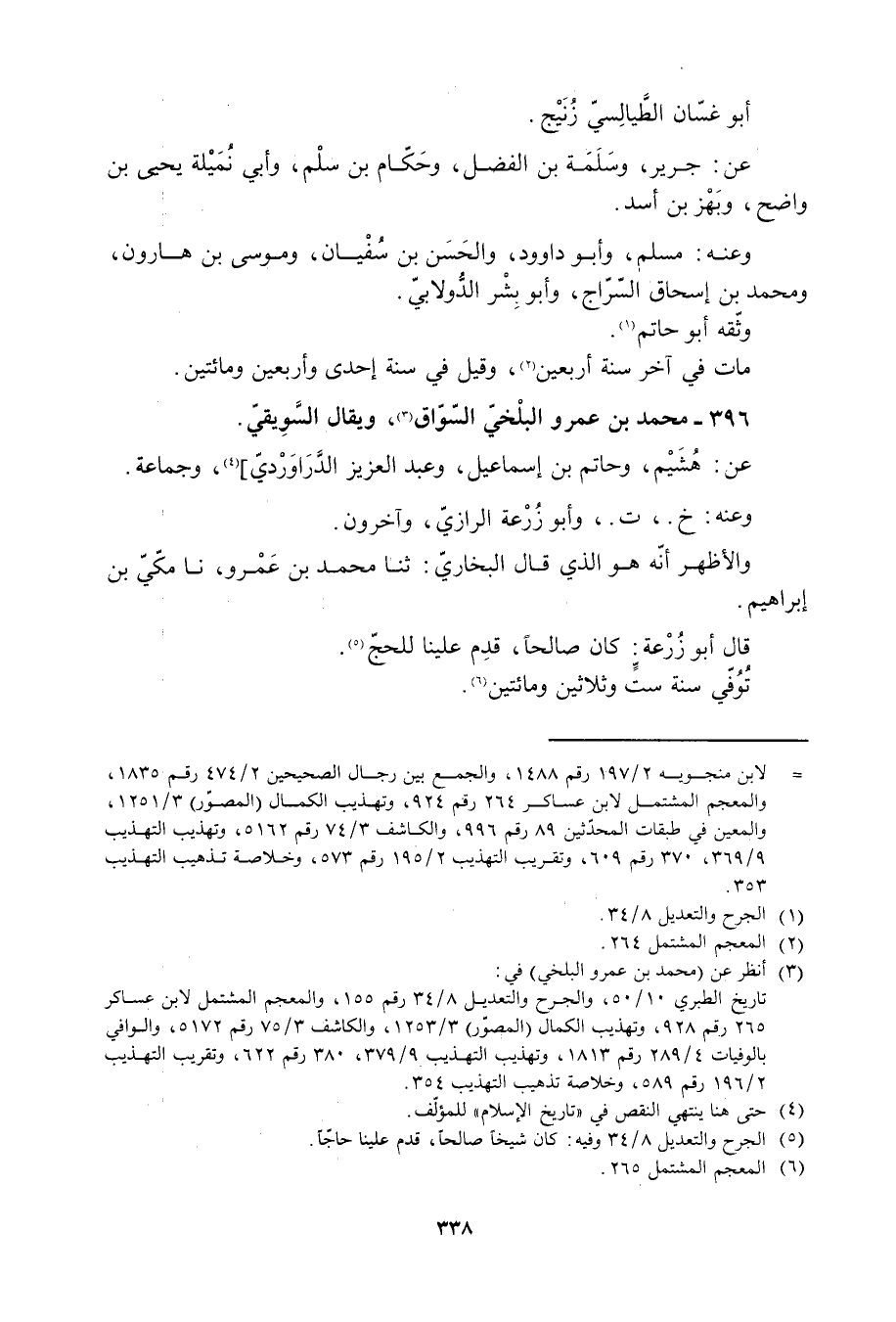 [3] انظر عن (محمد بن عمرو البلخي) في:
