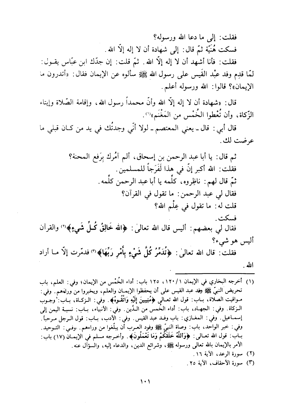 فَقَالَ لِي بَعْضُهُمْ: أَلَيْسَ قَالَ اللَّهُ تَعَالَى: اللَّهُ خالِقُ كُلِّ شَيْءٍ 13: 16 [2] وَالْقُرْآنُ أَلَيْسَ هُوَ شَيْءٌ؟