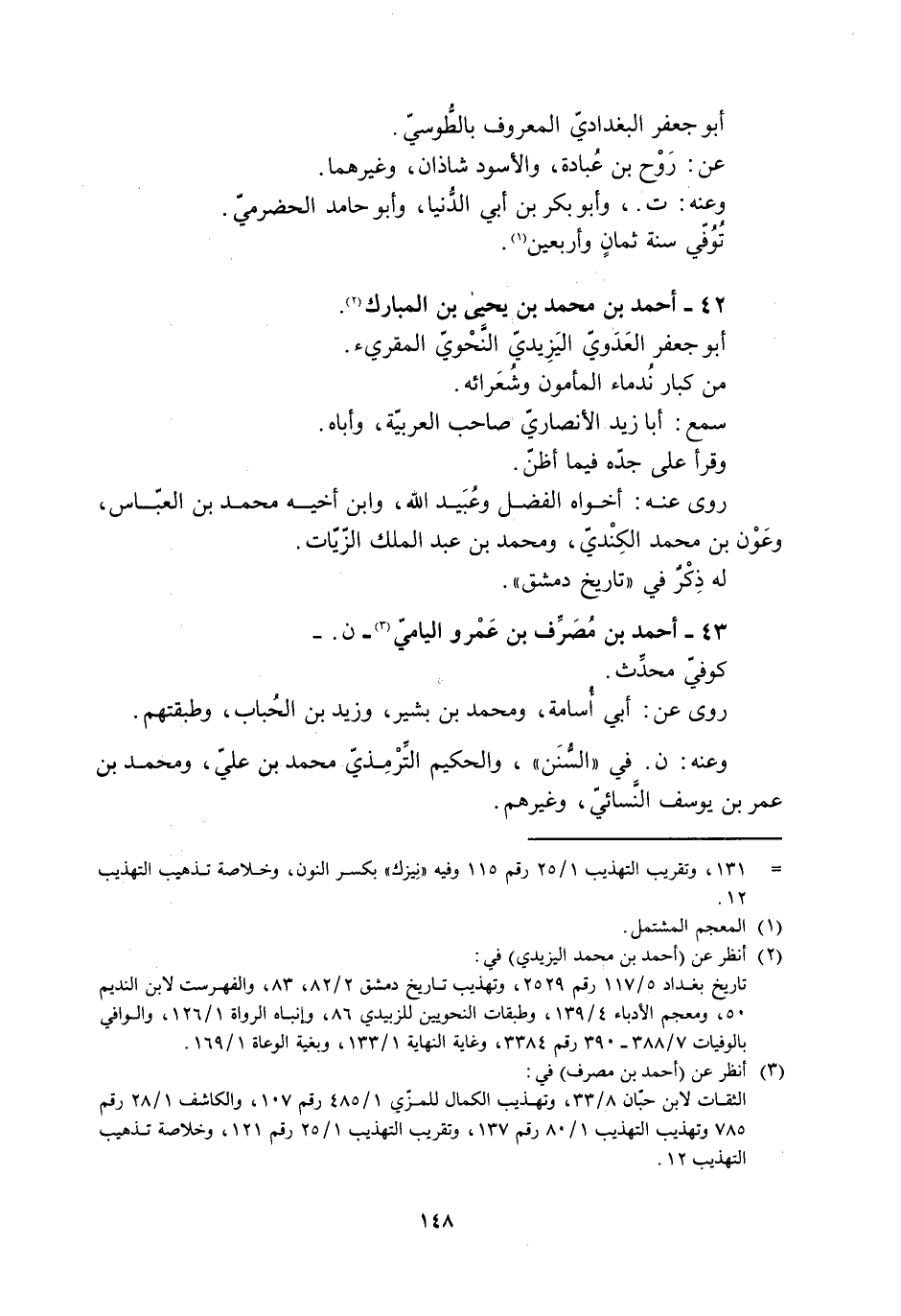 43- أحمد بن مُصَرِّف بن عَمْرو الياميّ [3]- ن. - كوفيّ محدّث.