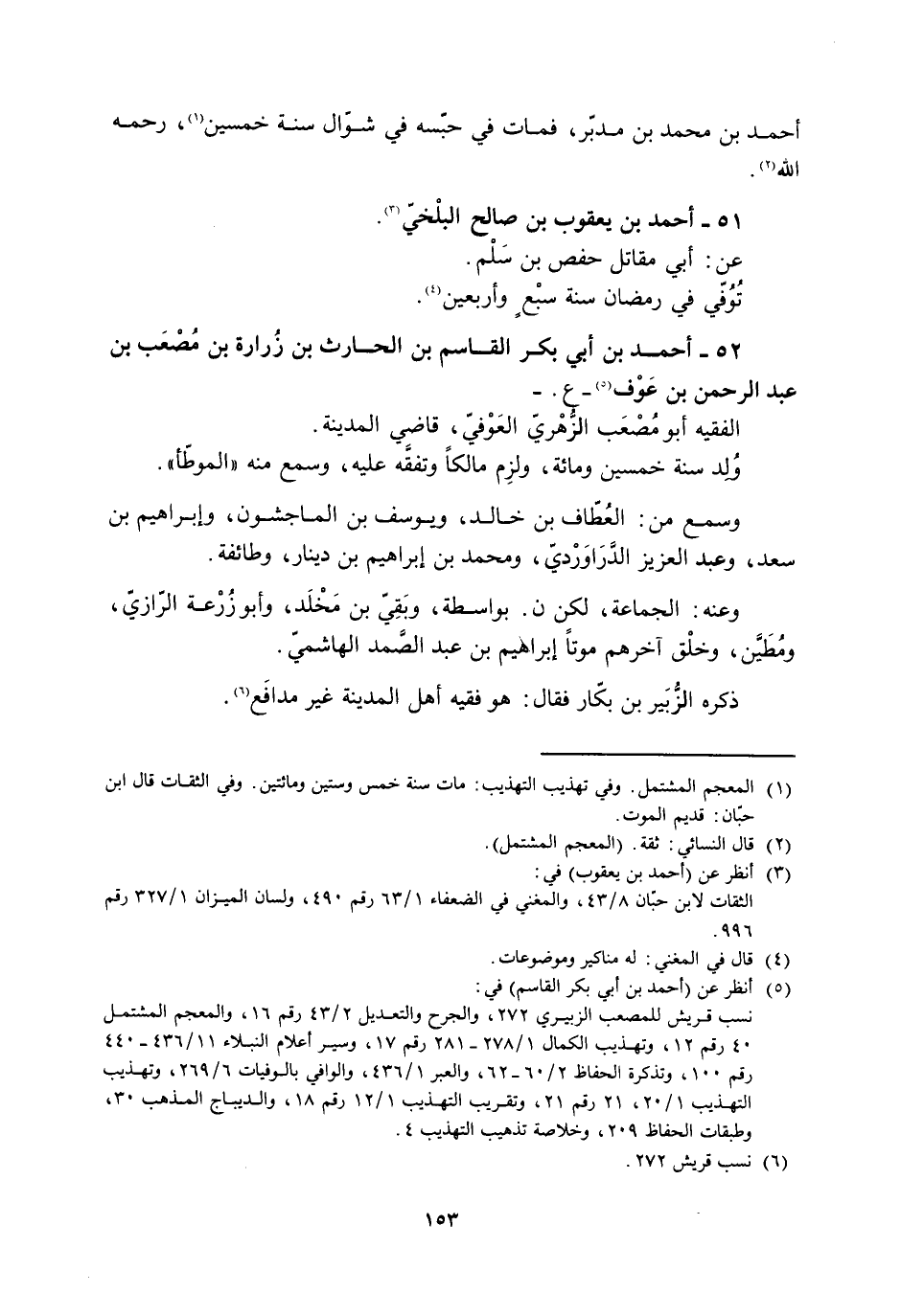 52- أحمد بن أبي بكر القاسم بن الحارث بن زُرَارَةُ بْنُ مُصْعَبِ بْنِ عَبْدِ الرَّحْمَنِ بْنِ عَوْفٍ [5]- ع. - الفقيه أبو مصعب الزّهريّ العوفيّ، قاضي المدينة.