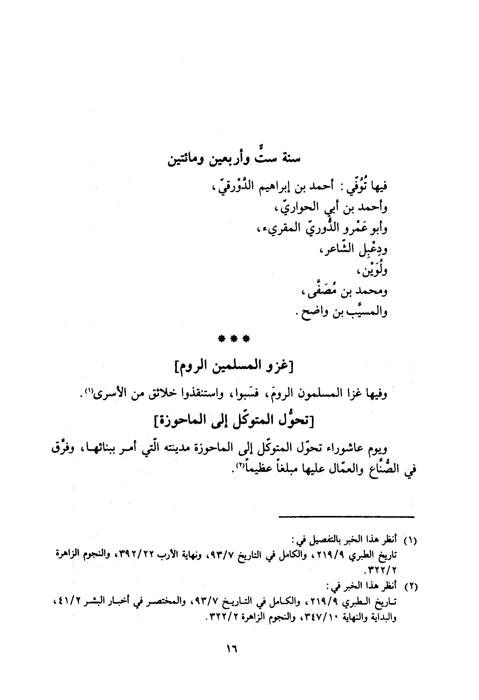 تاريخ الطبري 9/ 219، والكامل في التاريخ 7/ 93، ونهاية الأرب 22/ 392، والنجوم الزاهرة 2/ 322.