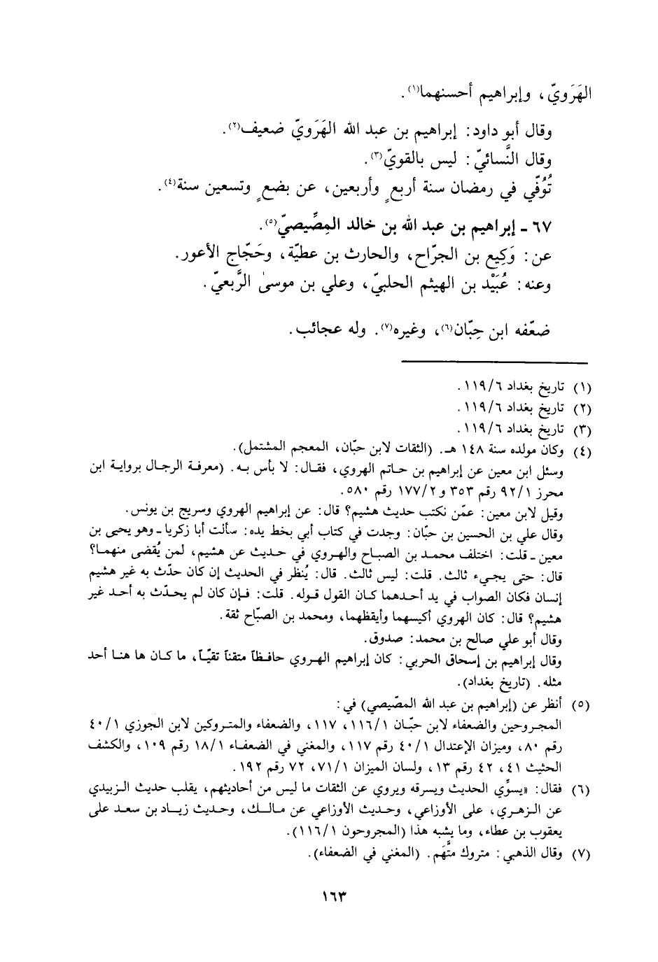 وقال أبو دَاوُد: إبراهيم بْن عبد الله الهَرَويّ ضعيف [2] .