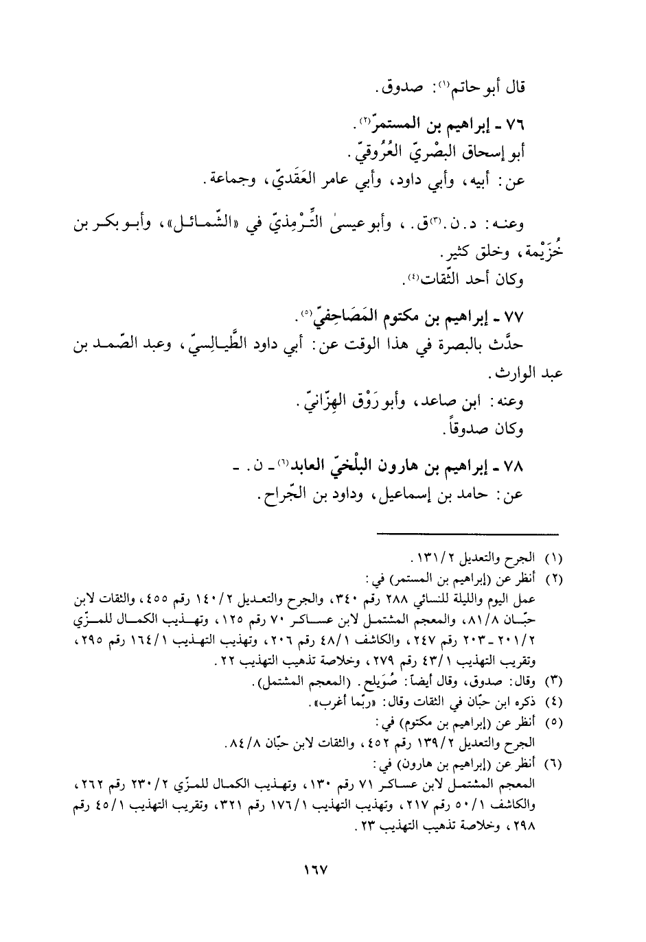78- إبراهيم بن هارون البلخي العابد [6]- ن. - عن: حامد بن إسماعيل، وداود بن الجّراح.