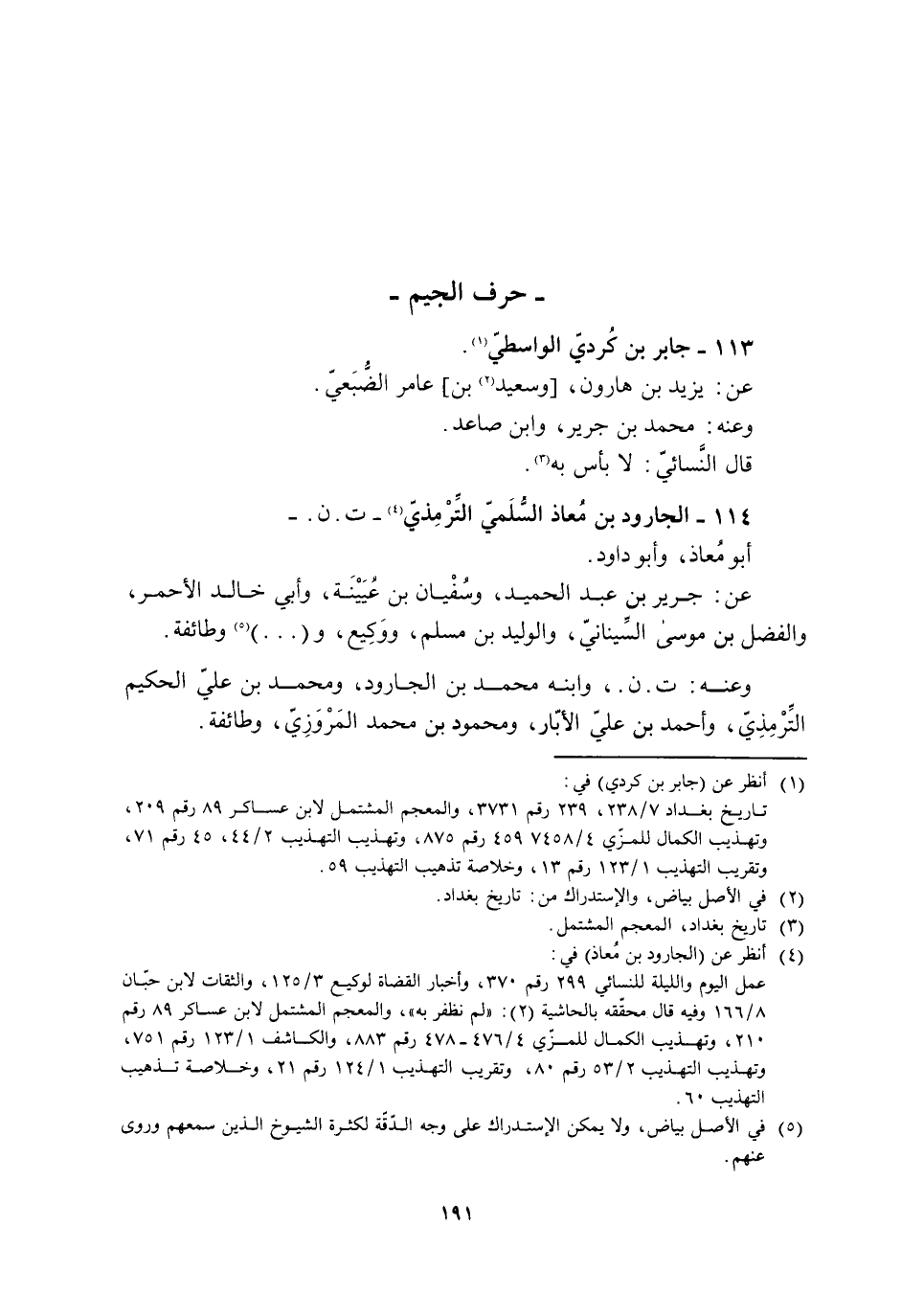 114- الجارود بن مُعَاذ السّلميّ التّرمذيّ [4]- ت. ن. - أبو معاذ، وأبو داود.