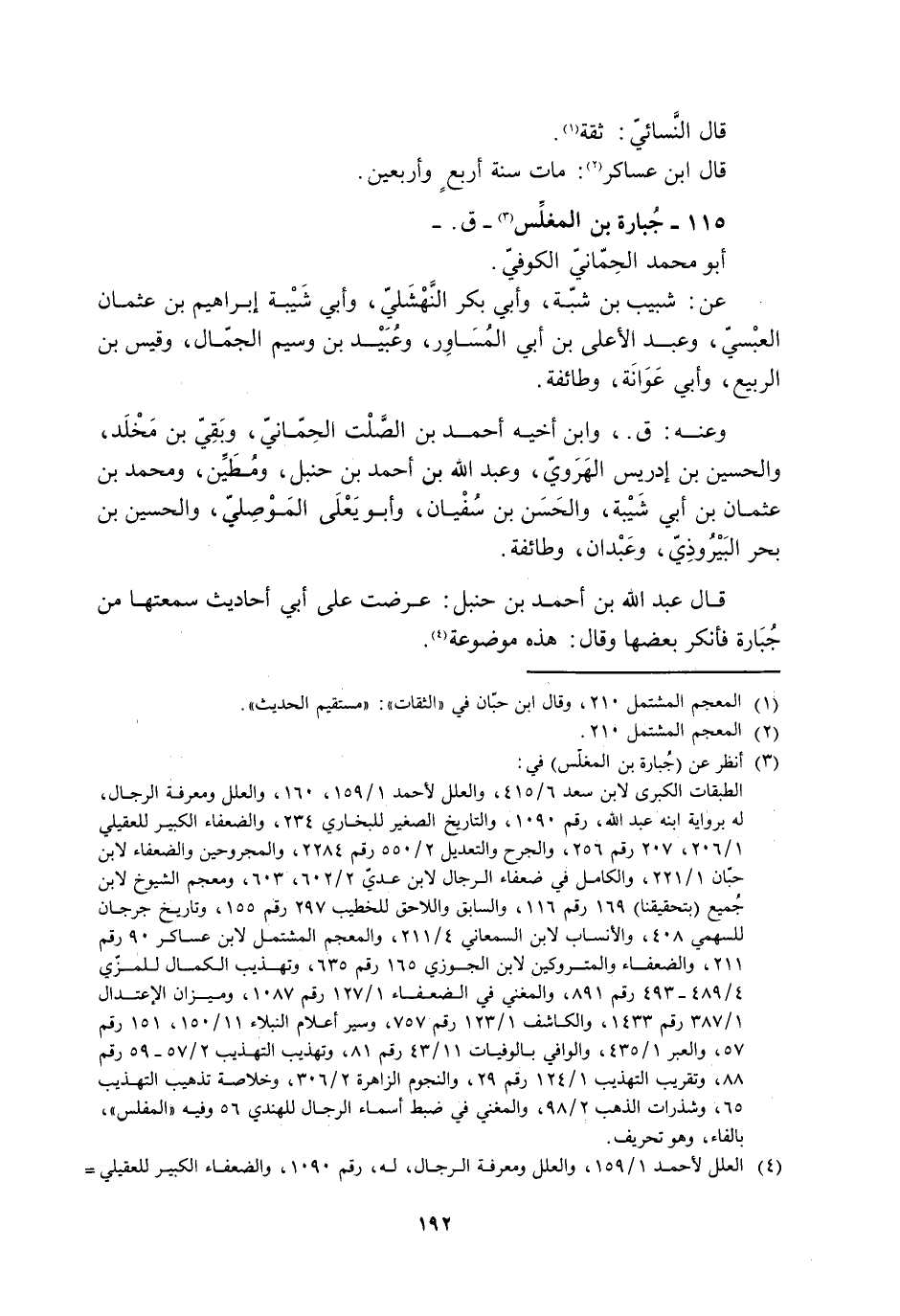115- جبارة بن المغلّس [3]- ق. - أبو محمد الحمّانيّ الكوفيّ.