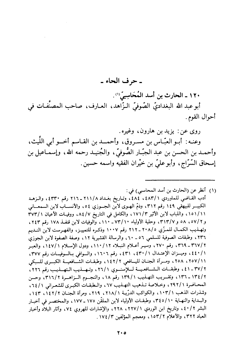 [1] انظر عن (الحارث بن أسد المحاسبي) في: