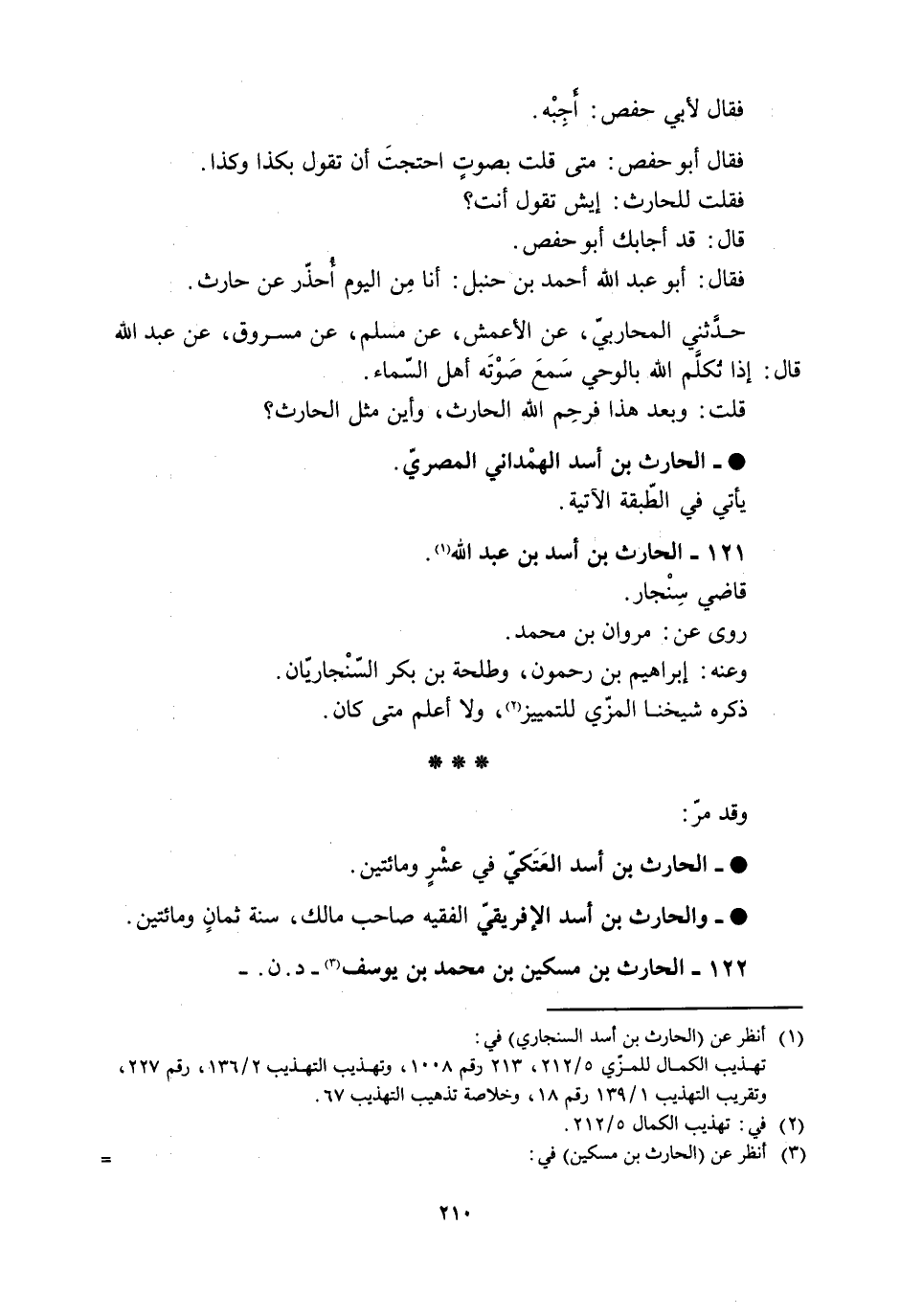 - الحارث بْن أسد العَتَكيّ فِي عشَرٍ ومائتين.