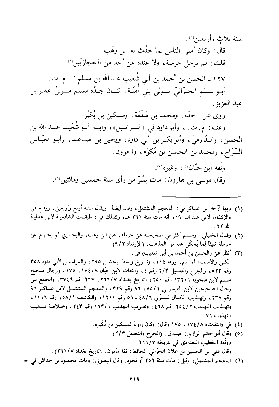 127- الحسن بن أحمد بن أبي شُعيب عبد الله بن مسلم [3]- م. ت. - أبو مسلم الحرّانيّ مولى بني أُميّة. كان جدُّه مسلم مولى عُمَر بْن عَبْد العزيز.