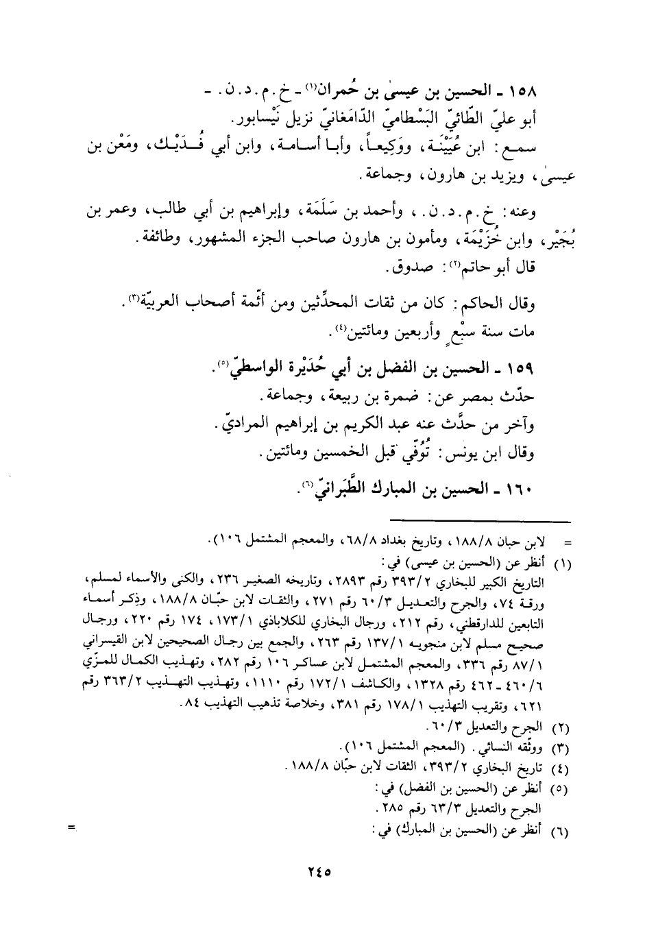 158- الحسين بن عيسى بن حمران [1]- خ. م. د. ن. - أبو عليّ الطّائيّ البسطاميّ الدّامغانيّ نزيل نَيْسابور.