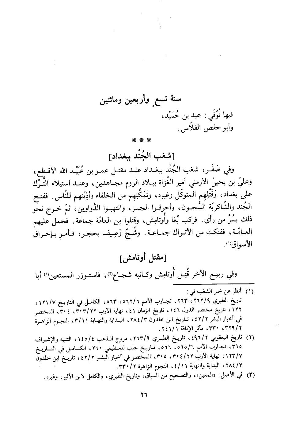 وفي ربيع الآخر قُتِل أُوتامِش وكاتبه شجاع [2] ، فاستوزر المستعين [3] أبا