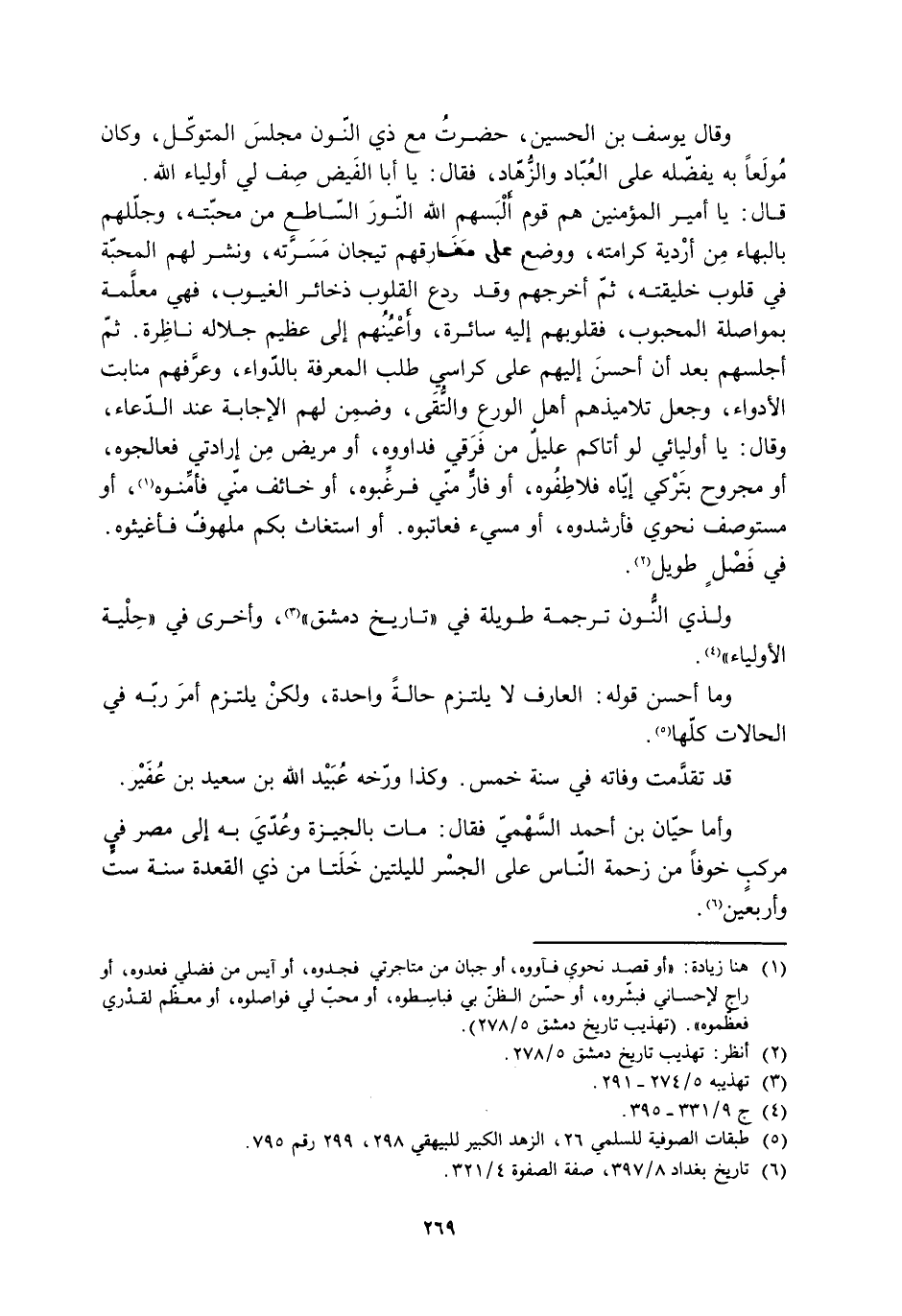 [6] تاريخ بغداد 8/ 397، صفة الصفوة 4/ 321.