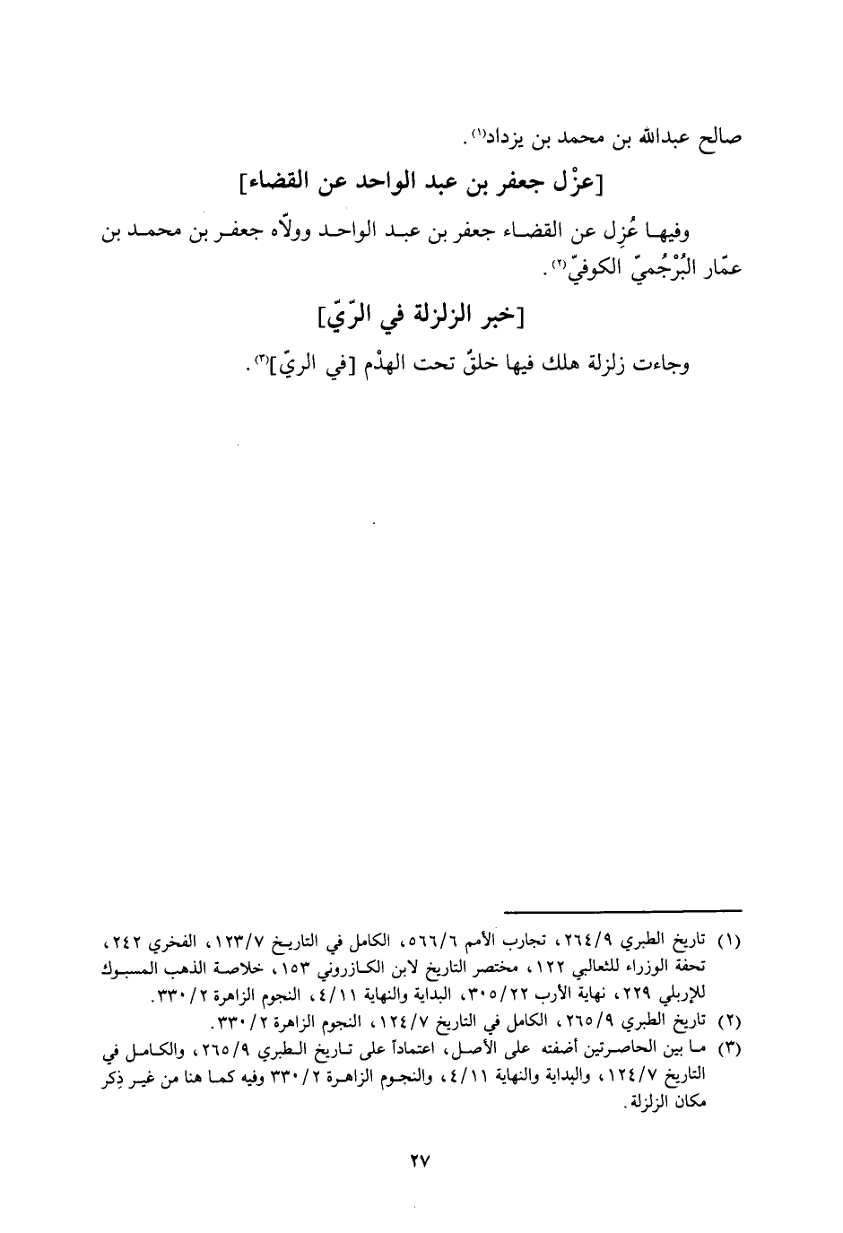[2] تاريخ الطبري 9/ 265، الكامل في التاريخ 7/ 124، النجوم الزاهرة 2/ 330.