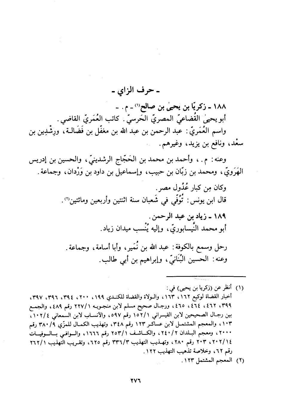 188- زكريّا بن يحيى بن صالح [1]- م. - أبو يحيى القضاعيّ المصريّ الحرسيّ. كاتب العُمَريّ القاضي.