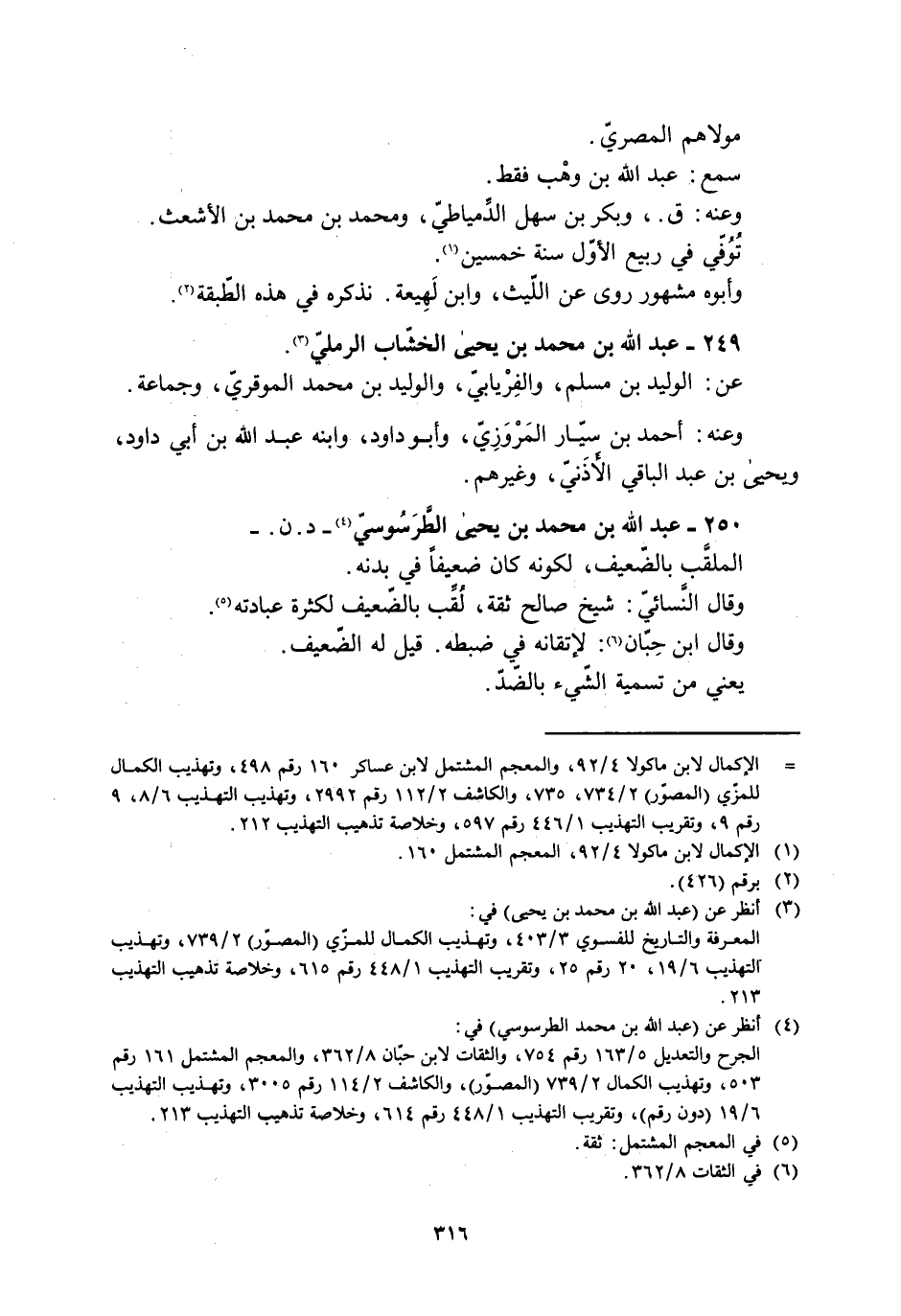 250- عبد الله بن محمد بن يحيى الطّرسوسيّ [4]- د. ن. - الملقّب بالضّعيف، لكونه كان ضعيفا في بدنه.