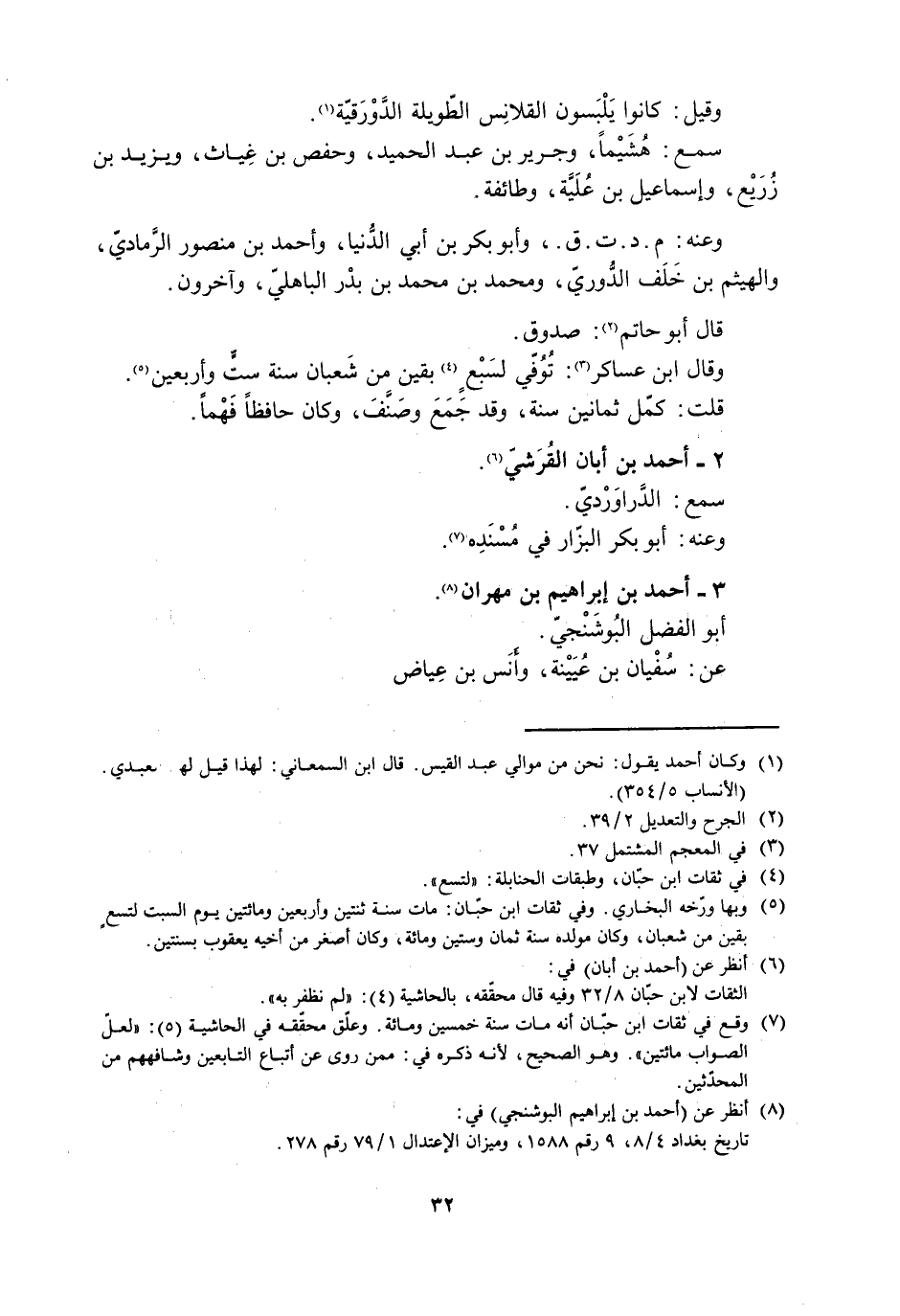 [7] وقع في ثقات ابن حبّان أنه مات سنة خمسين ومائة. وعلّق محقّقه في الحاشية (5) : «لعلّ الصواب مائتين» . وهو الصحيح، لأنه ذكره في: ممن روى عن أتباع التابعين وشافههم من المحدّثين.