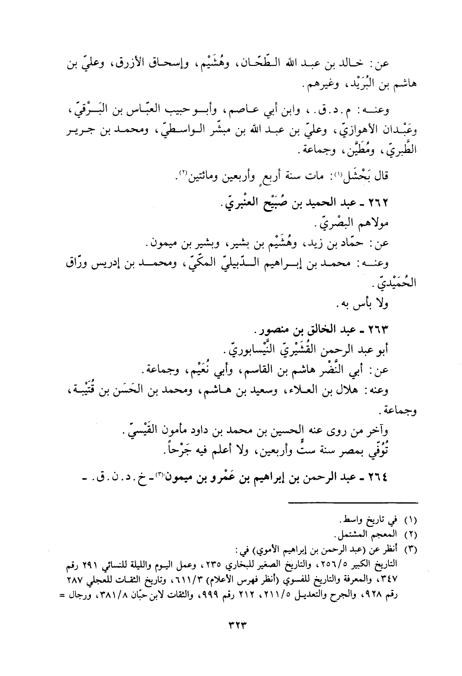 264- عبد الرحمن بن إبراهيم بن عمرو بن ميمون [3]- خ. د. ن. ق. -