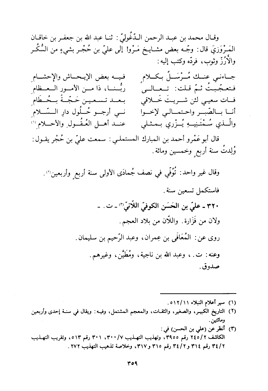 320- عليّ بن الحَسَن الكوفيّ اللانيّ [3]- ت. - ولان من فَزَارة. واللان من بلاد العجم.