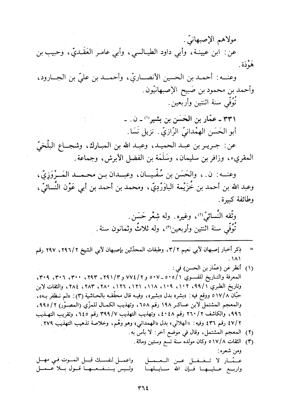 331- عمّار بن الحسن بن بشير [1]- ن. - أبو الحسن الهمدانيّ الرّازيّ. نزيل نَسَا.