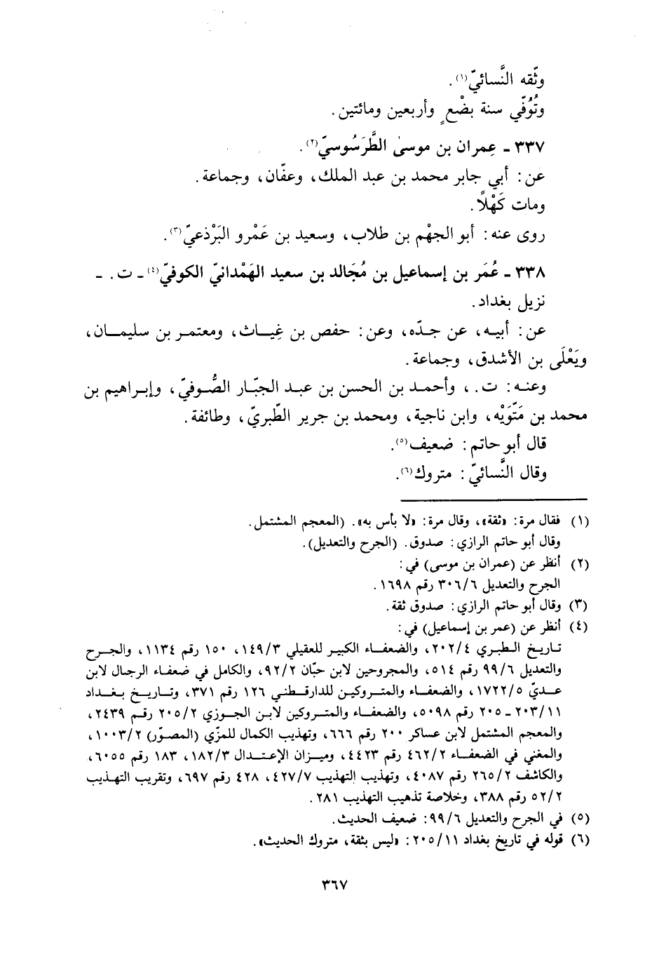 338- عمر بن إِسْمَاعِيلُ بْنُ مُجَالِدِ بْنِ سَعِيدٍ الْهَمَدَانِيُّ الْكُوفِيُّ [4]- ت. - نزيل بغداد.